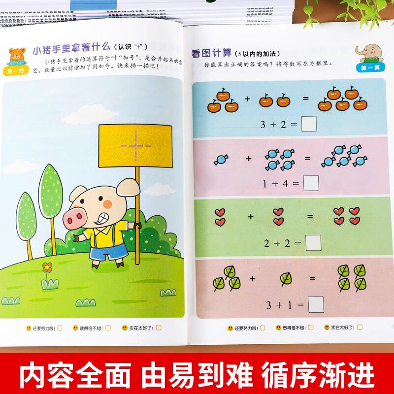 幼小衔接加减法练习册5/10/20以内加减法天天练中大班幼儿练习册全套每日一练幼儿园学前班教材一日一练幼升小一年级数学思维训练