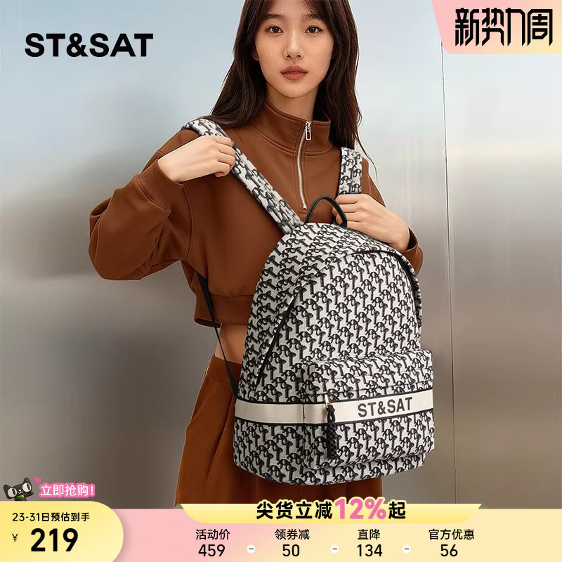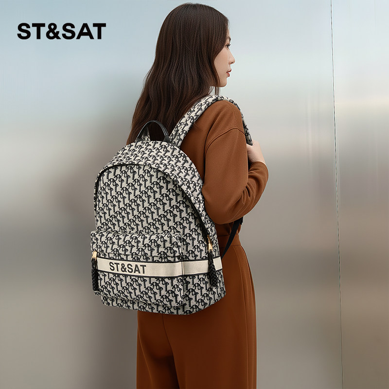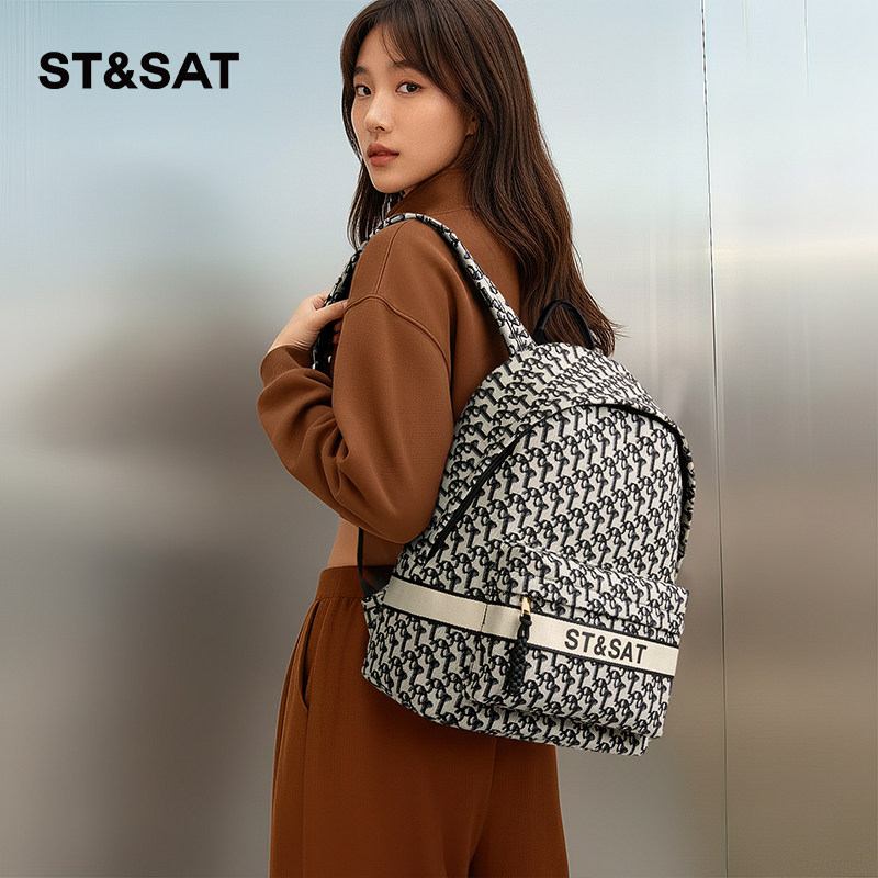 星期六包包新款女士复古时尚印花双肩包女韩版旅行帆布百搭小背包