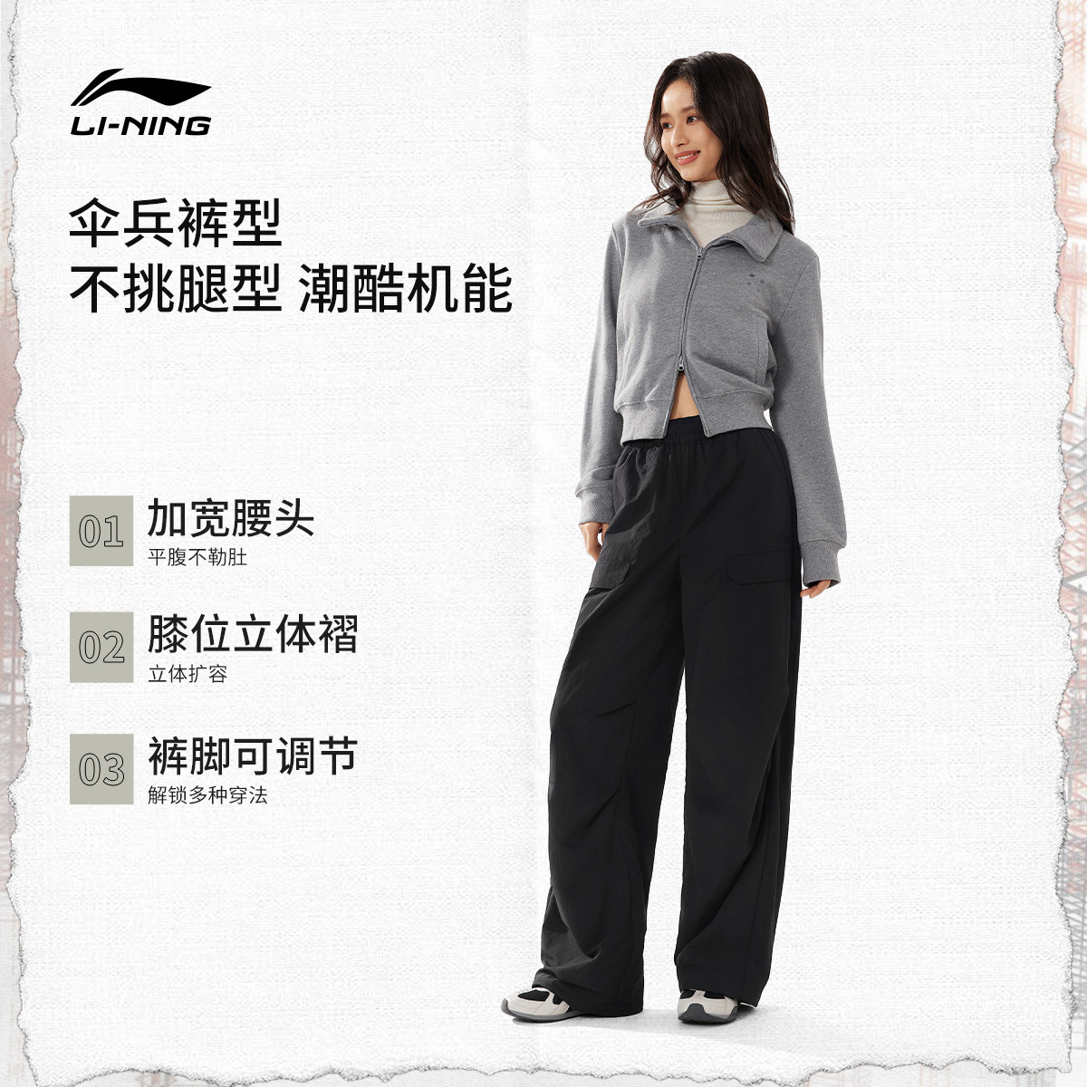 李宁C位裤丨直筒工装裤女2025新款休闲伞兵裤秋冬加绒运动长裤女