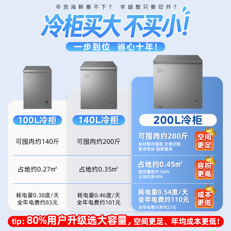 美的100/143/200L小冰柜家用商用冷柜小型冷冻柜冷藏一级官方冰箱