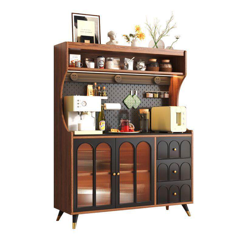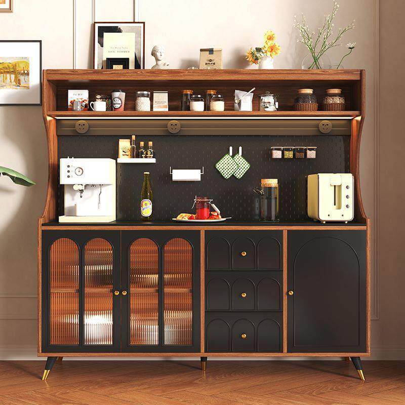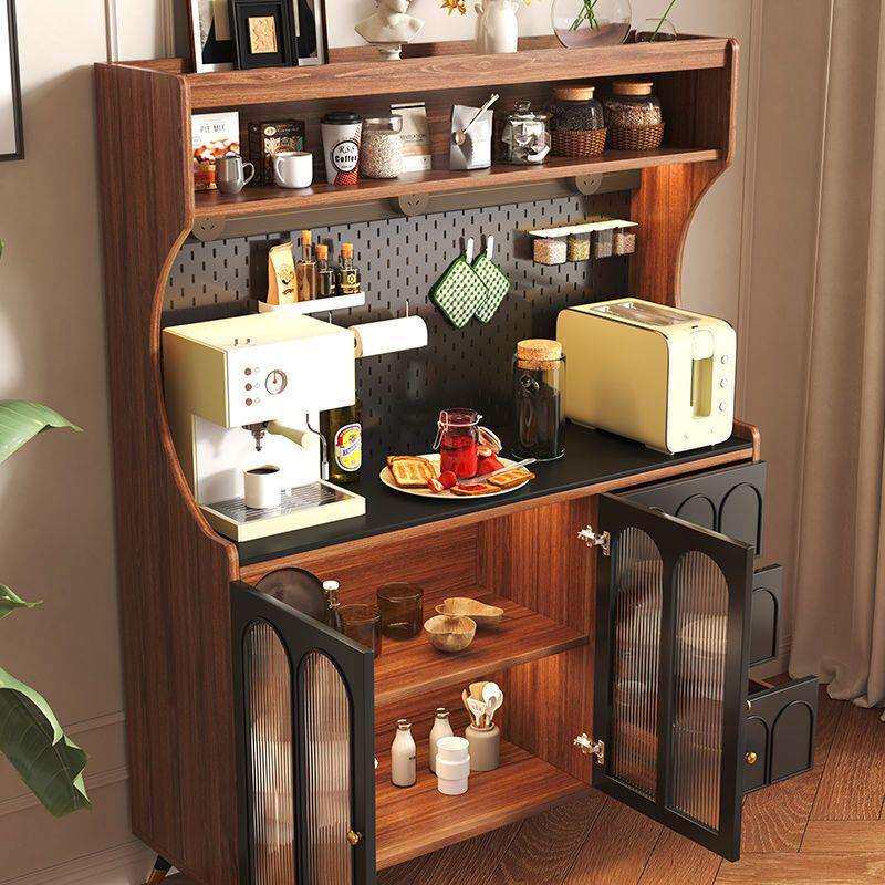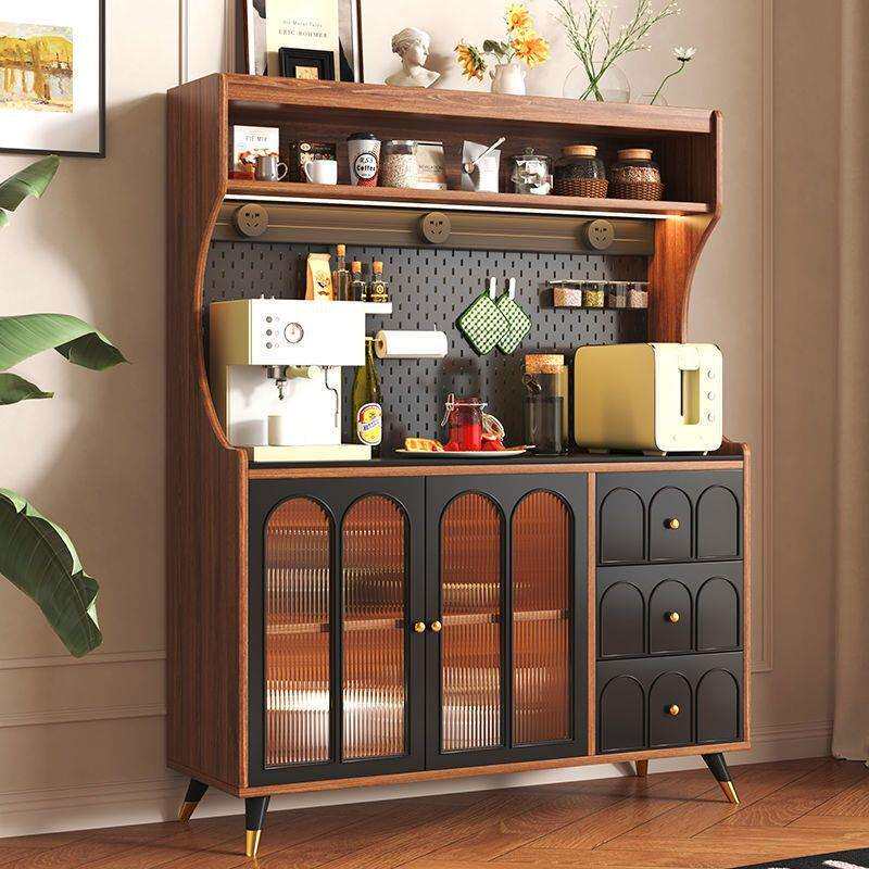 洞洞板复古中古风餐边柜靠墙一体家用厨房客厅轻奢储物酒柜置物架