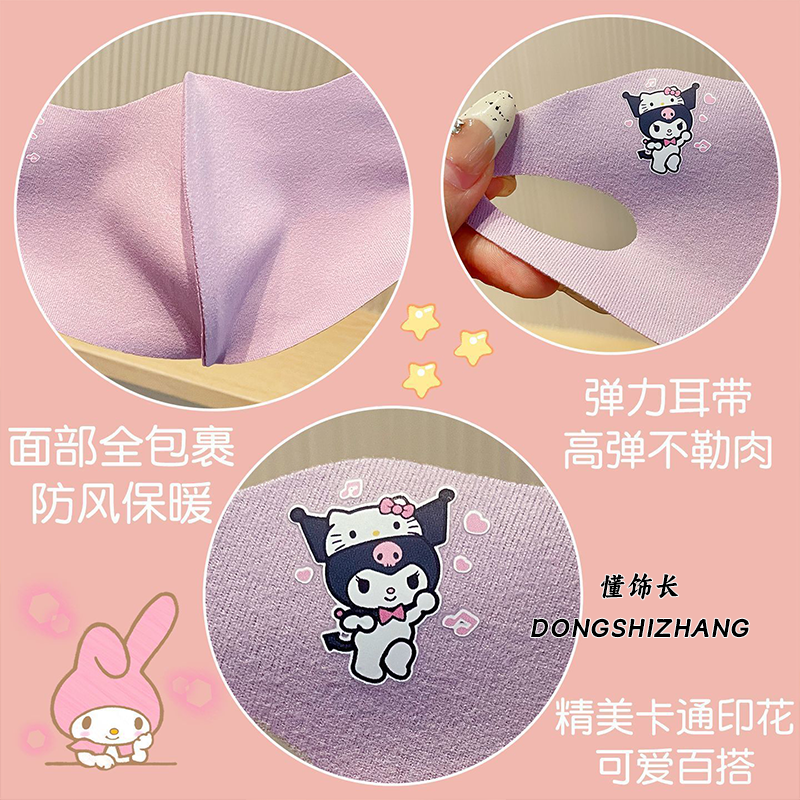 懂饰长冬季防寒儿童卡通可爱保暖口罩纯棉防风加厚库洛米户外面罩