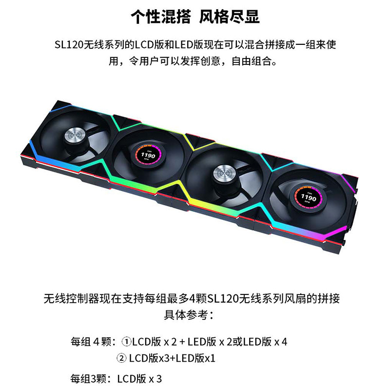 联力一代积木风扇SL逸风无线版Wireless LCD带屏幕电脑机箱散热器