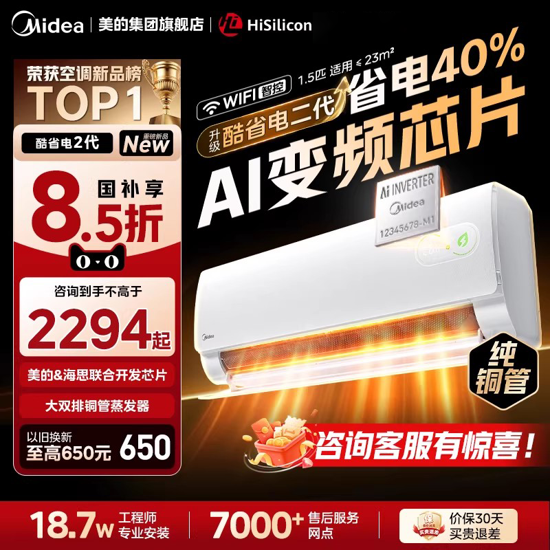 美的空调酷省电二代大1.5匹1匹一级能效变频冷暖家用挂机官方正品