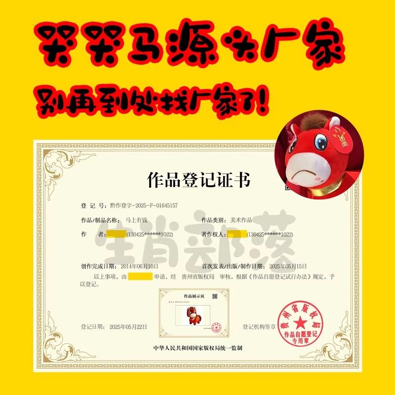 正品2026马年吉祥物马上有钱公仔哭哭马毛绒玩具生肖马小玩偶活动