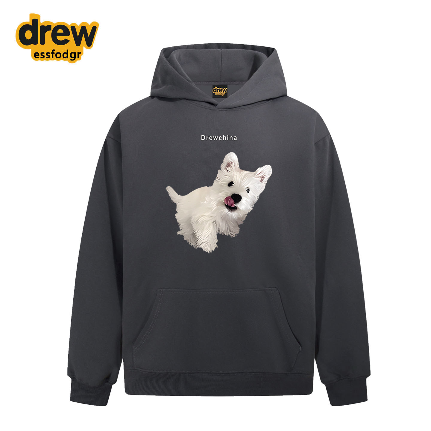 Drew卡通西高地狗狗印花连帽卫衣男女美式潮牌休闲宽松情侣装外套