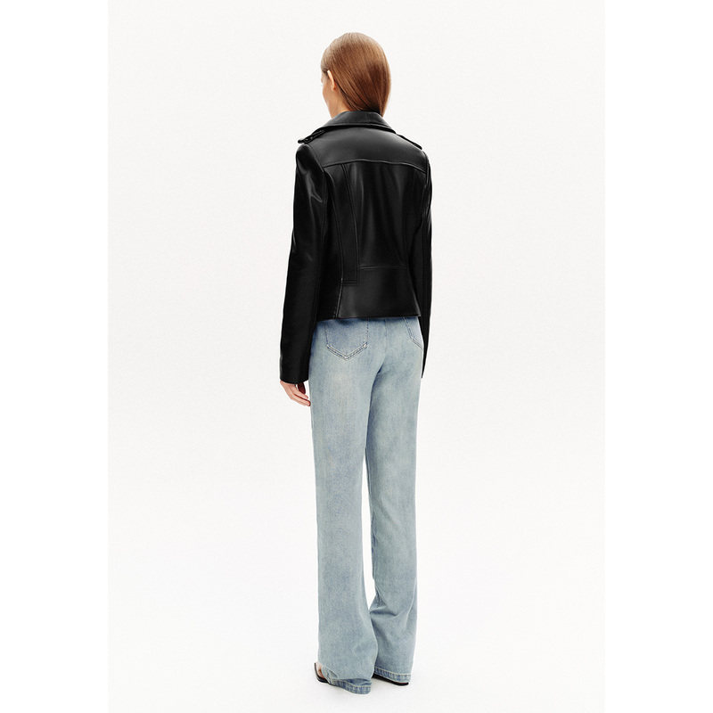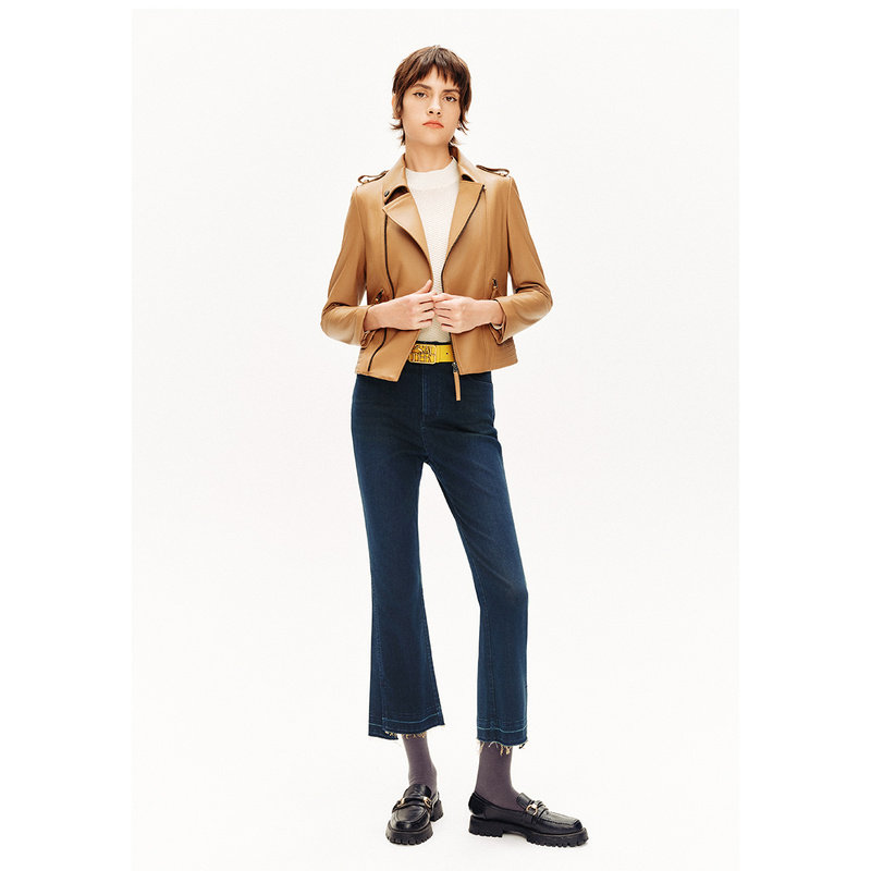 Eland衣恋皮衣女纯色带拉链长袖翻领外套2025冬季新款
