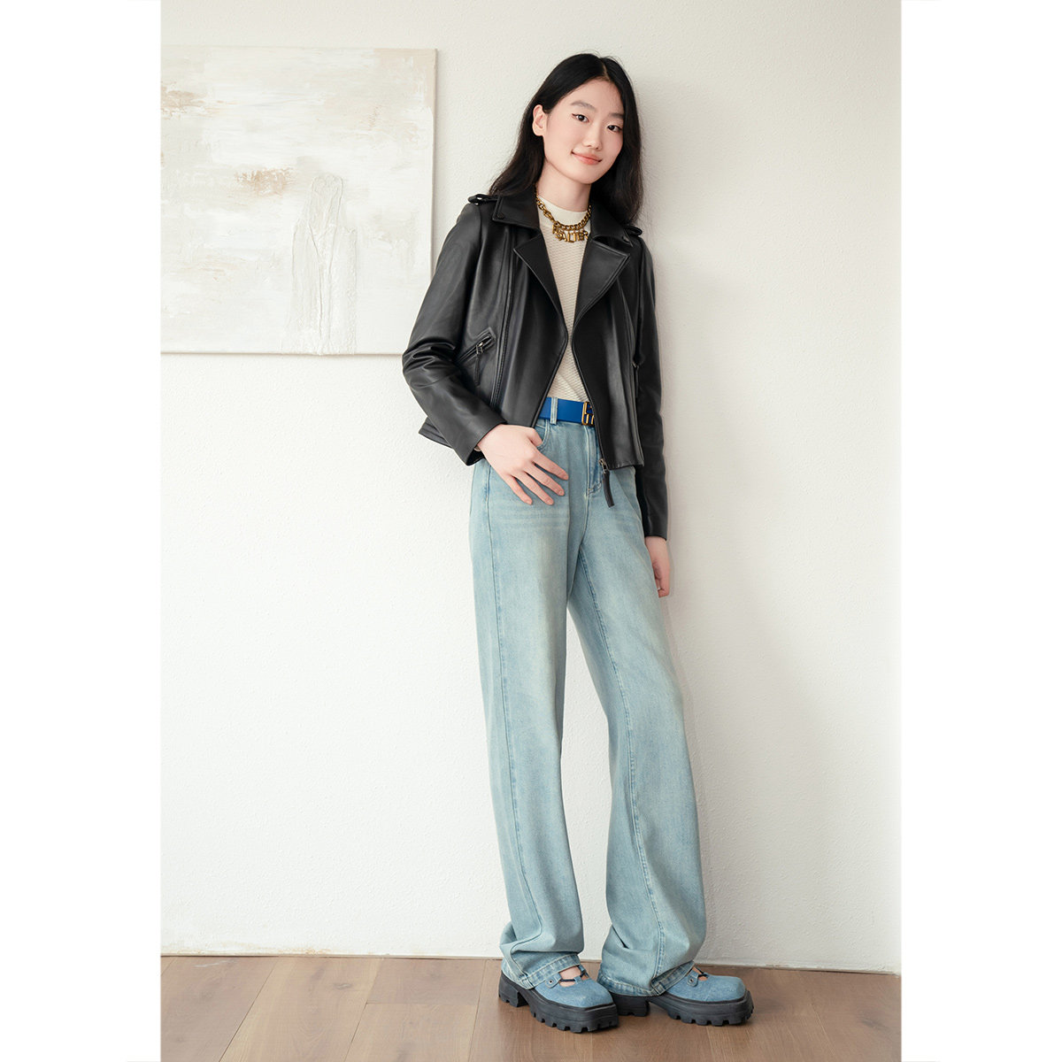 【头层绵羊皮】诗篇专选酷飒机车风短款羊皮夹克外套皮衣秋款