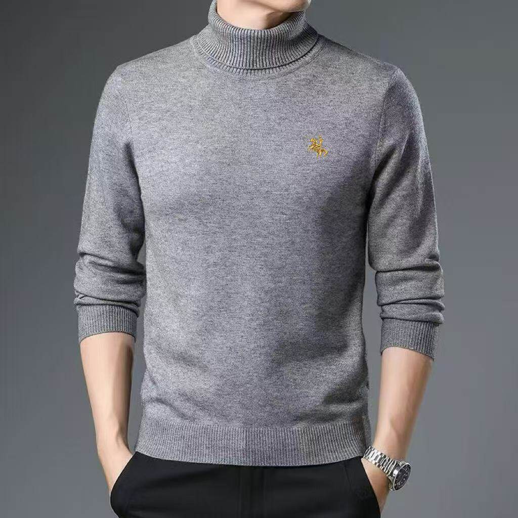 鄂尔多斯市半高领100%纯羊毛衫男休闲中厚保暖毛衣针织打底羊绒衫