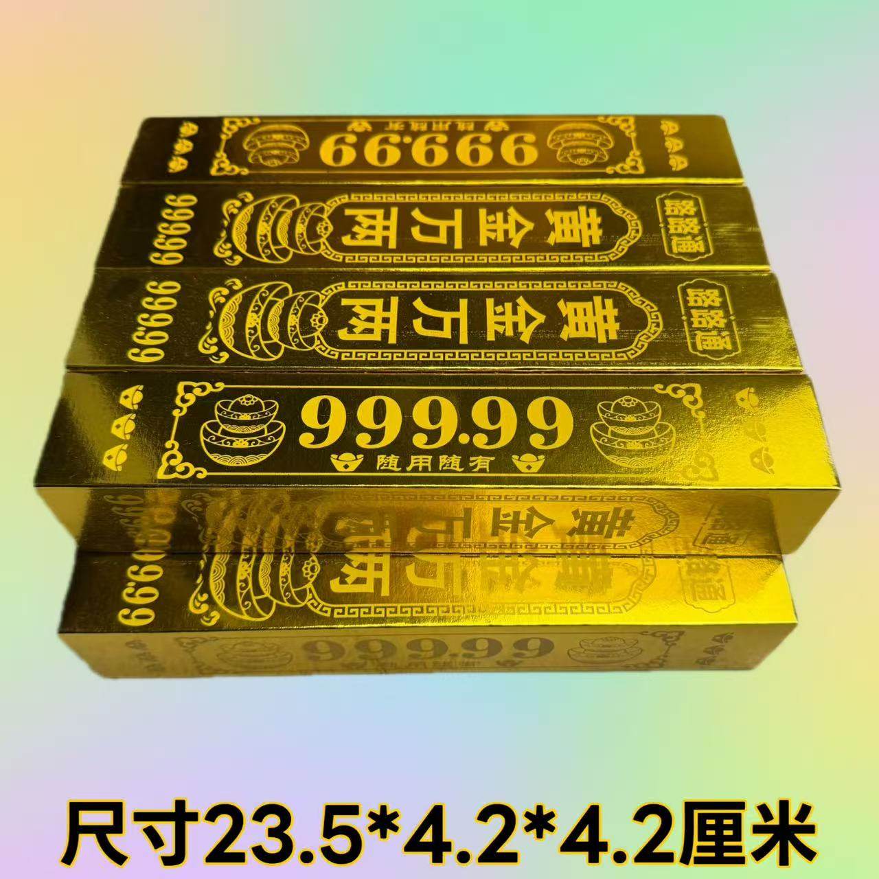 黄金万两高亮加厚大号仿真金条银条硬卡纸全套节日用品整箱批发