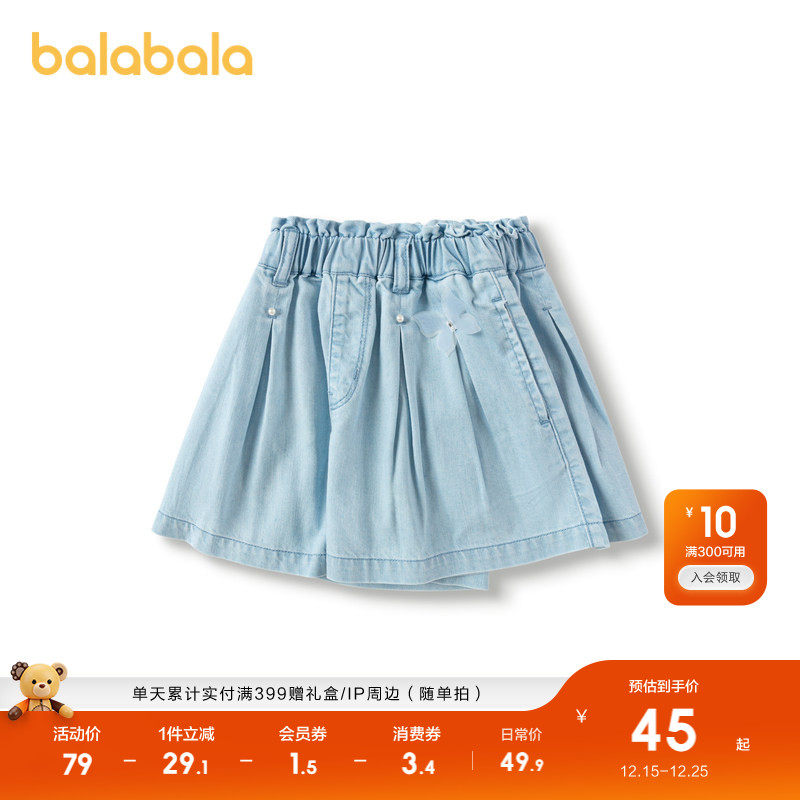 巴拉巴拉童装女童短裤儿童A型牛仔裙裤洋气百搭夏季裤子小童宝宝