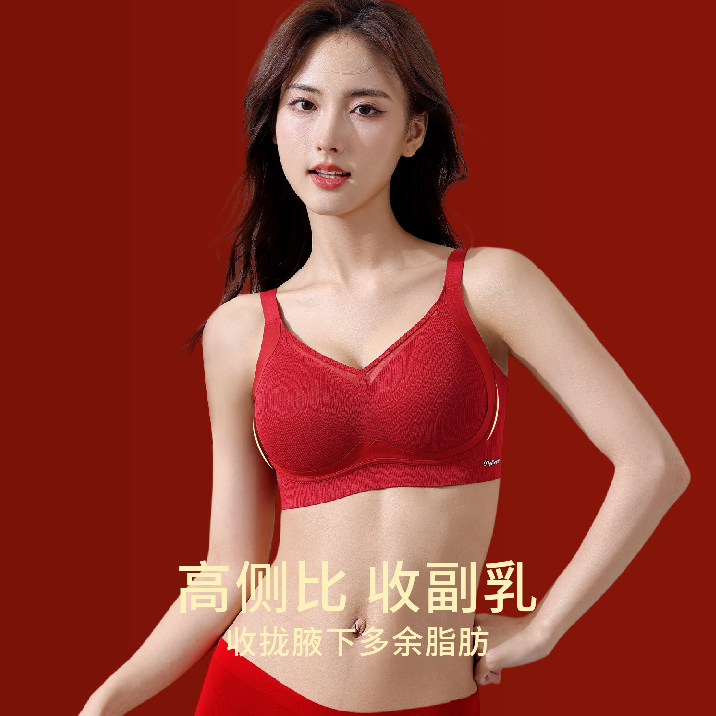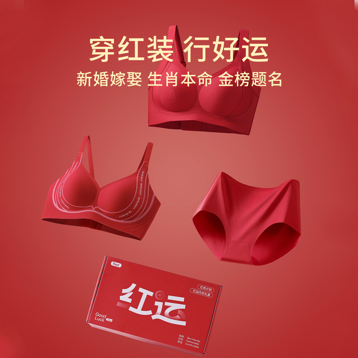 红色内衣套装本命年女士2025新款内裤结婚新娘小胸聚拢显大文胸罩