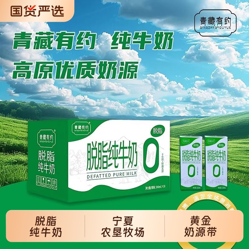 青藏有约宁夏3.2g原生乳蛋白脱脂纯牛奶健身减脂首选