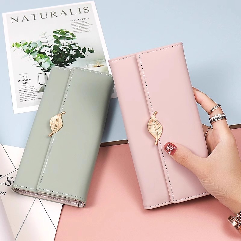钱包大容量2025新款爆款女士长款小清新叶子卡包手拿包零钱