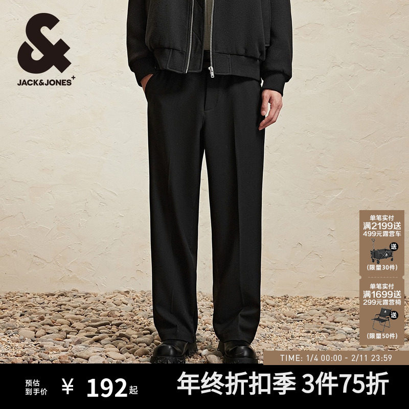 杰克琼斯男装秋季宽松阔腿裤静奢风休闲裤长裤男裤子字母刺绣男款