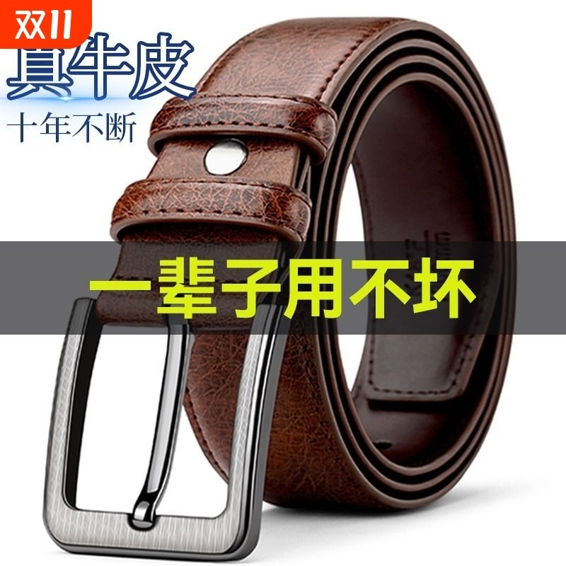 老式牛皮男士腰带皮带裤带二层针扣复古商务休闲中青年牛仔裤礼盒