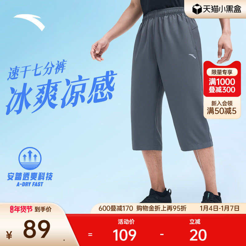 安踏速干裤丨梭织七分裤子男夏季新款跑步骑行运动裤系带健身短裤