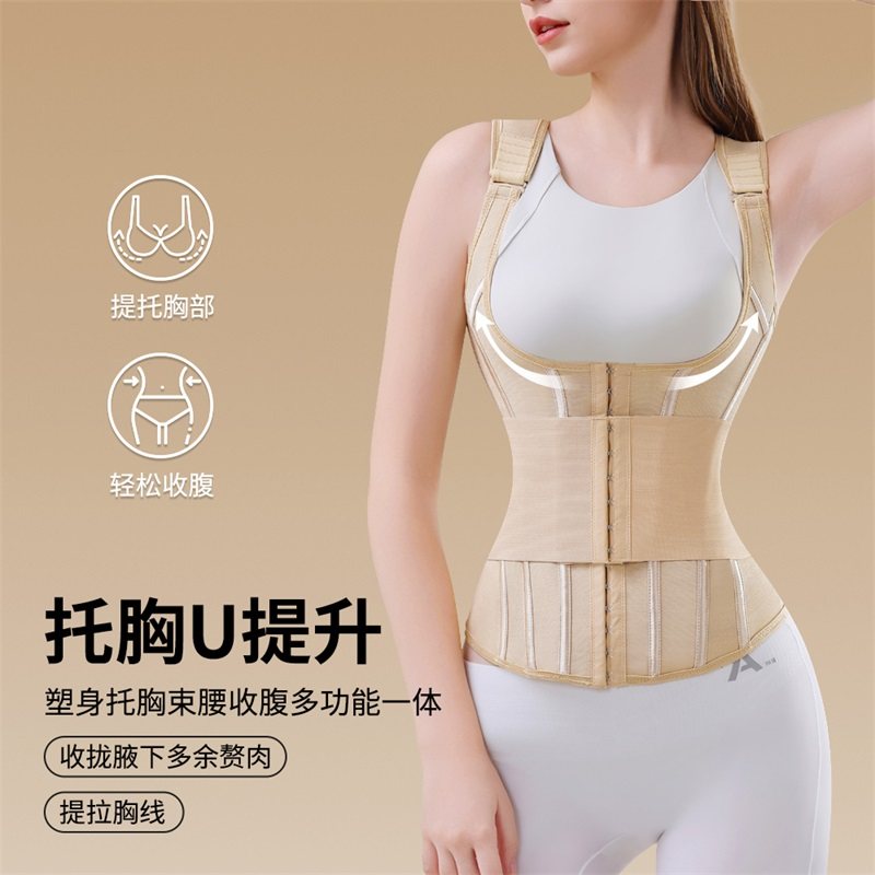 MISTHIN肩带升级背心式网纱塑身衣强力收腹托胸挺腰收背束腰带女