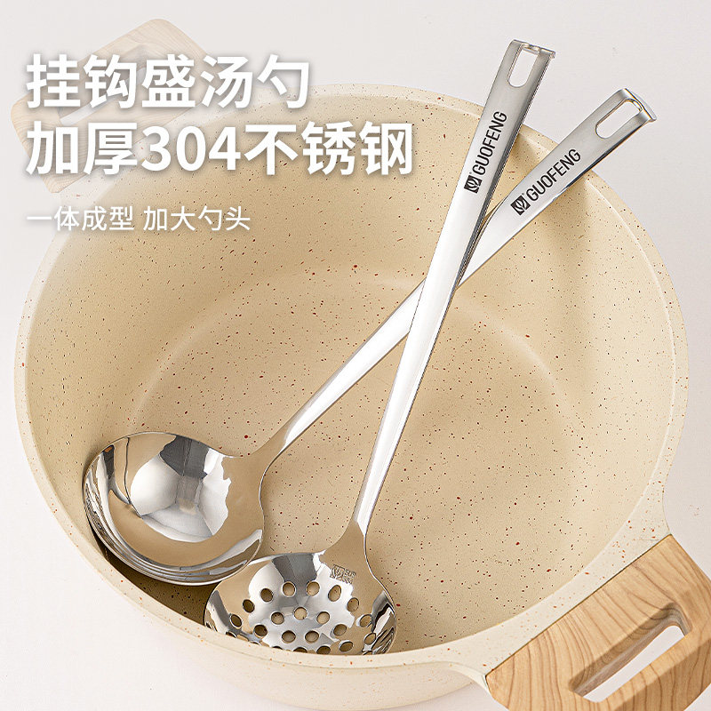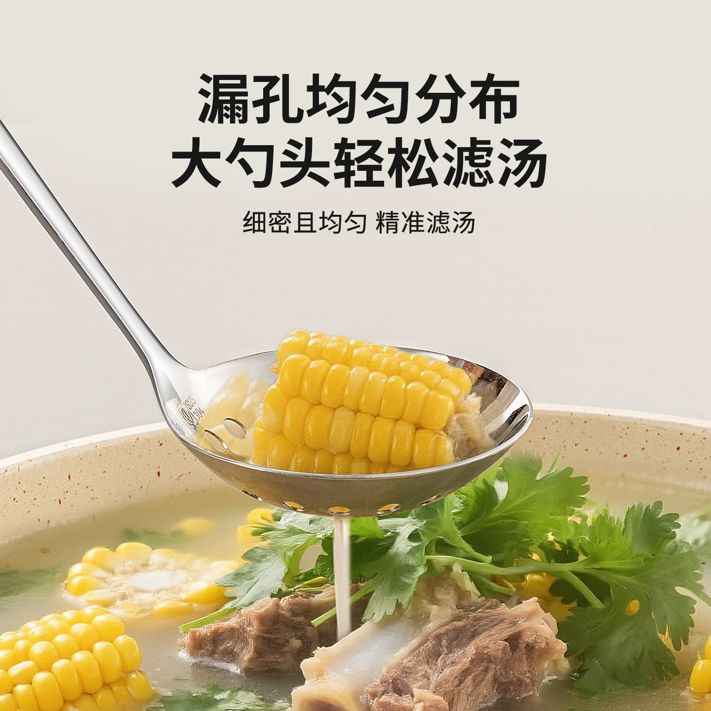 火锅专用漏勺汤勺食品级304不锈钢家用厨房长柄大号盛汤勺子套装