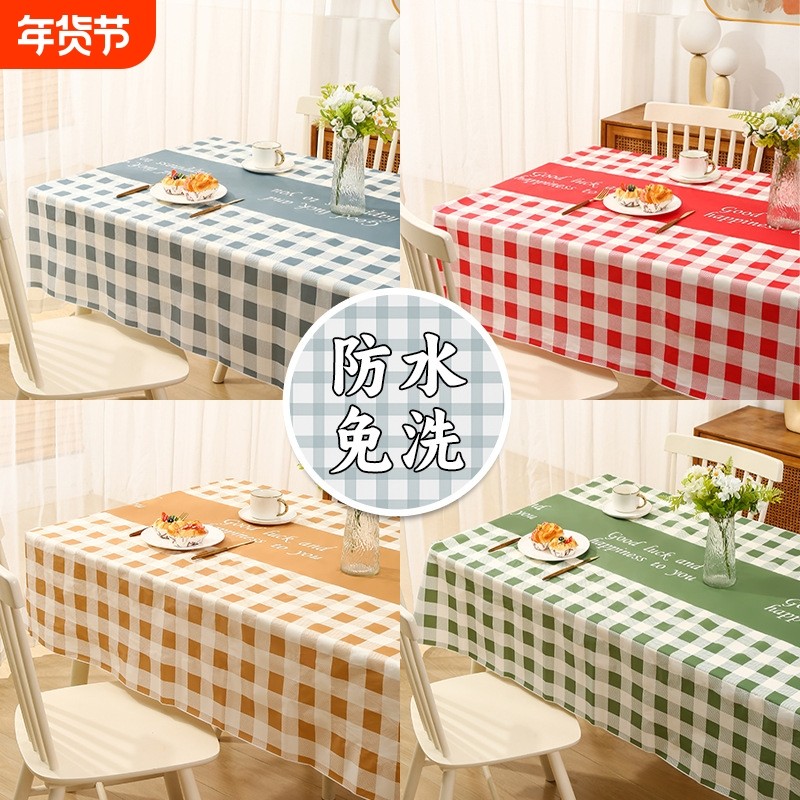桌旗温馨耐高温台布ins桌布防水防油免洗高级感peva格子餐桌垫