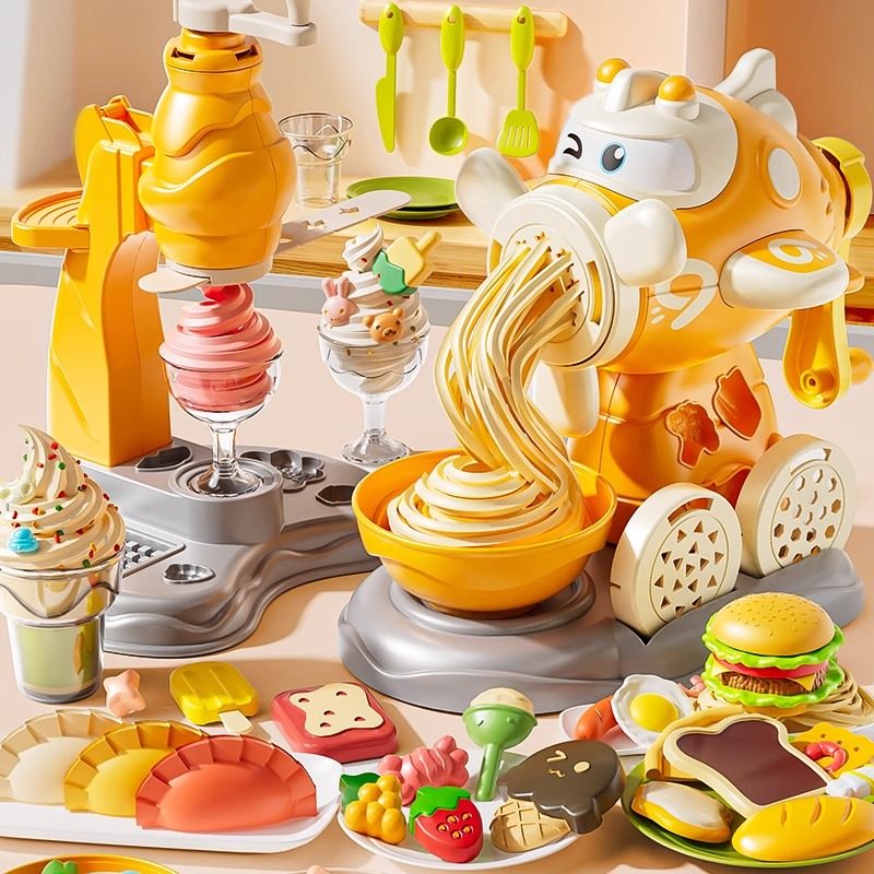 面条机儿童彩泥玩具冰淇淋蛋糕手捏橡皮模具套装手工食品级轻粘土