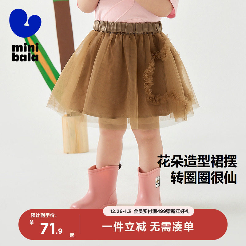 迷你巴拉巴拉网纱短裙女童婴儿衣服宝宝周岁裙子2025夏季新款