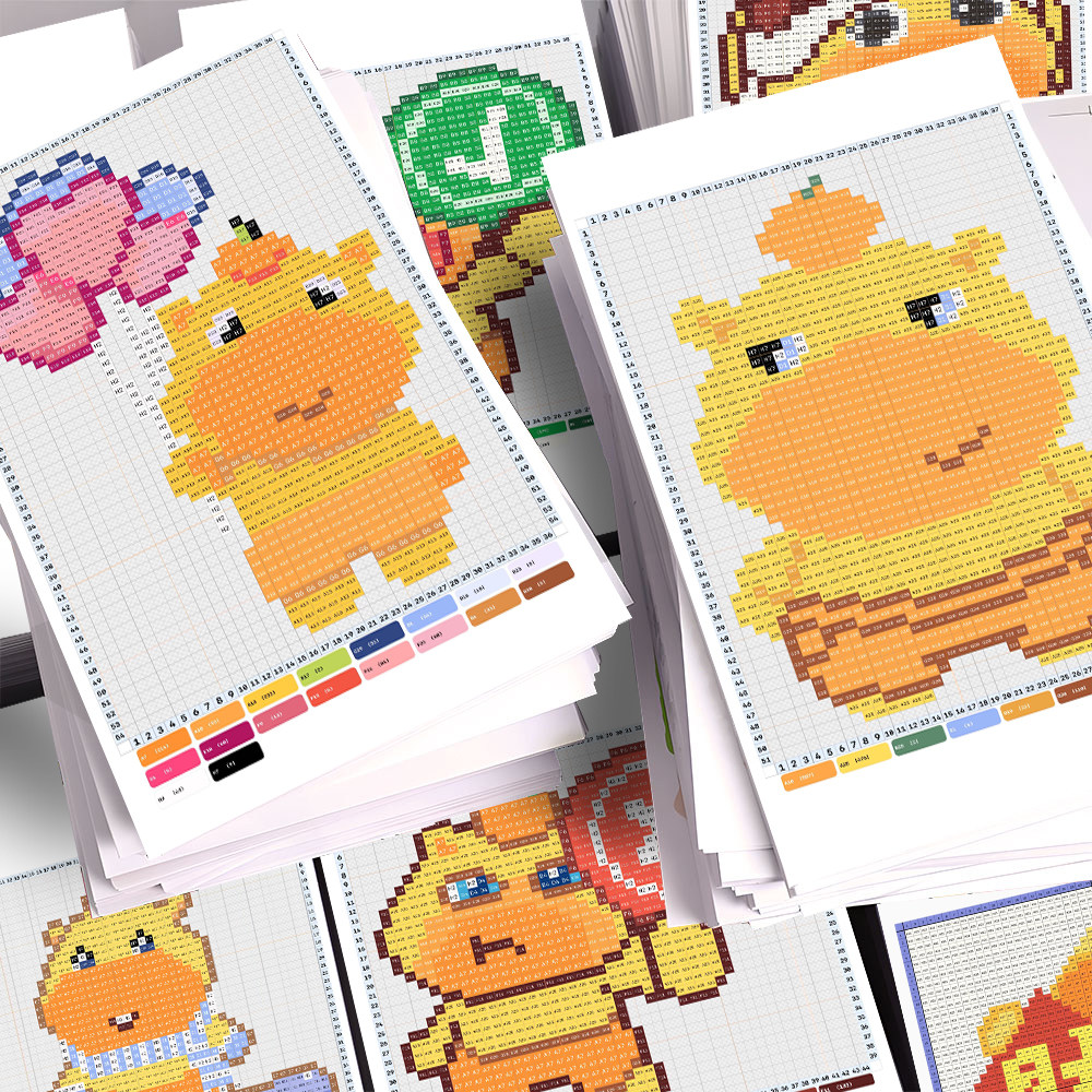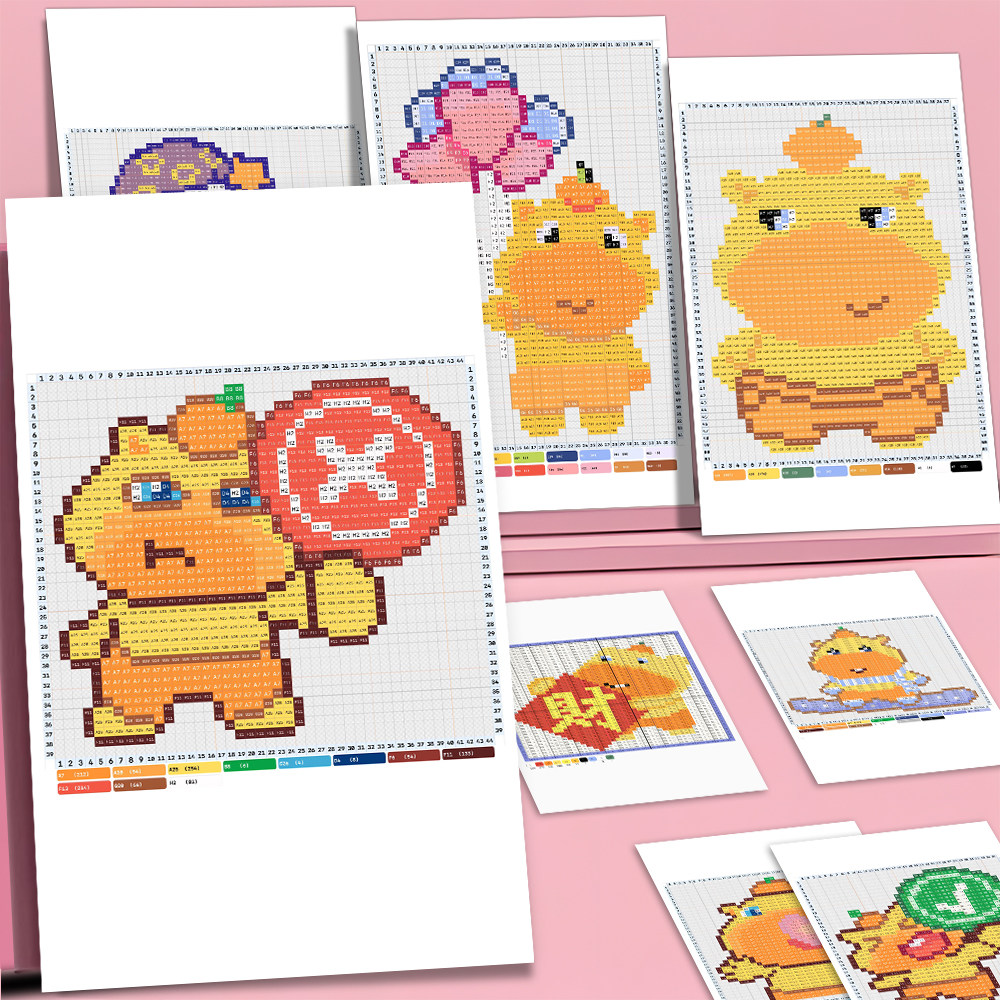 12张水豚噜噜拼豆图纸贴纸可爱卡通像素热门噜噜表情包手账装饰