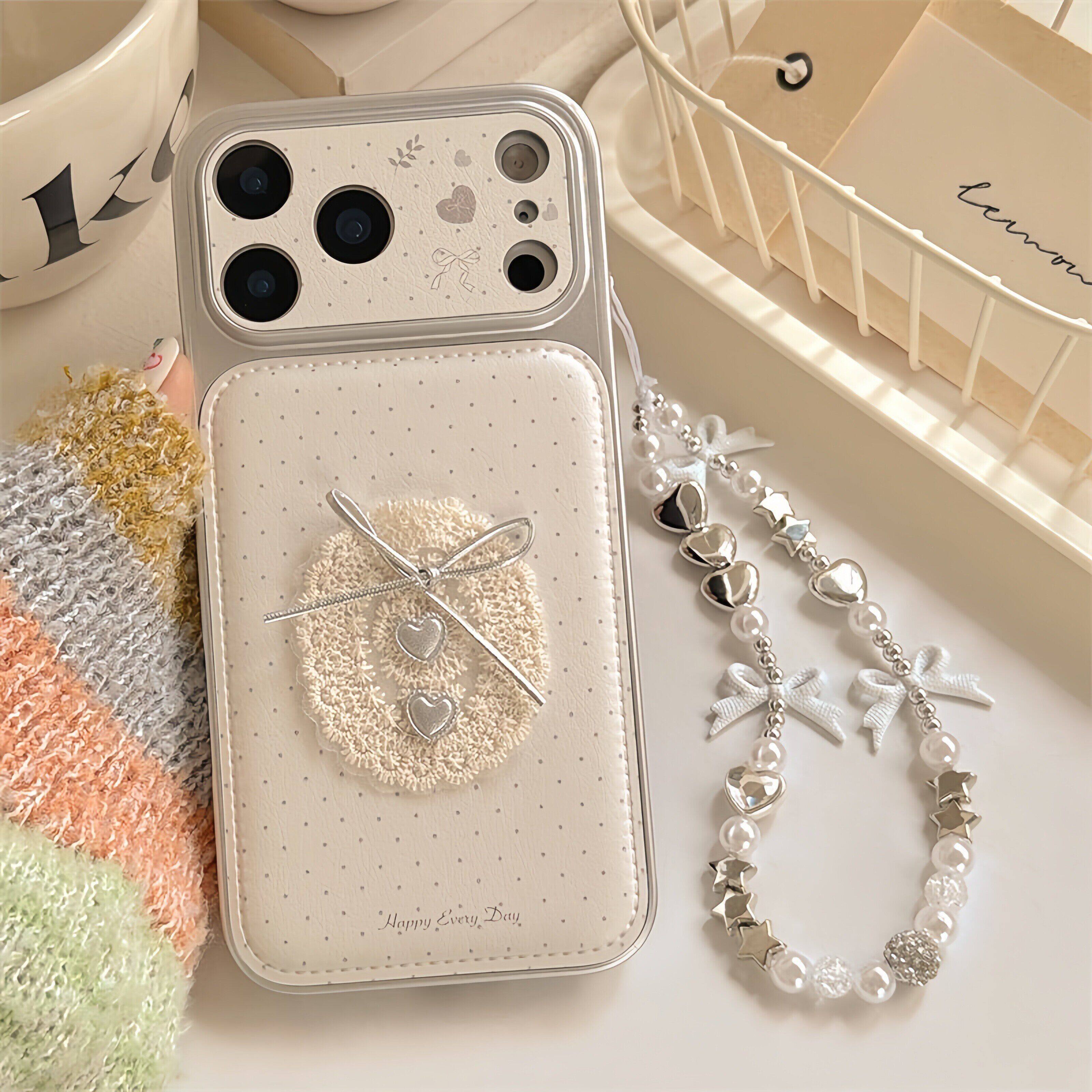 新款甜美ins风波点蕾丝蝴蝶结适用苹果17ProMax简约艺术16Pro创意小众15少女心14全包保护套13防摔手机壳女