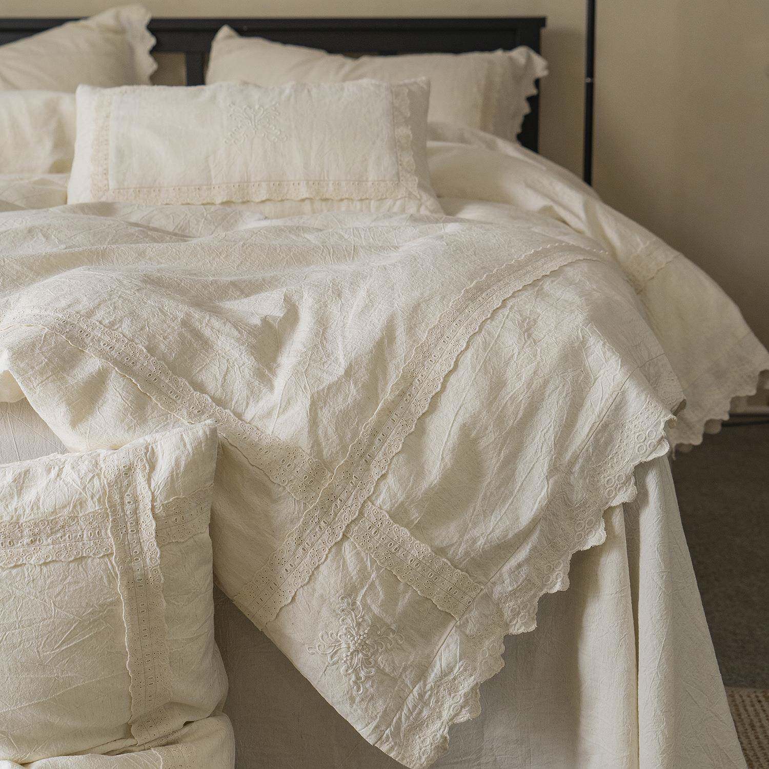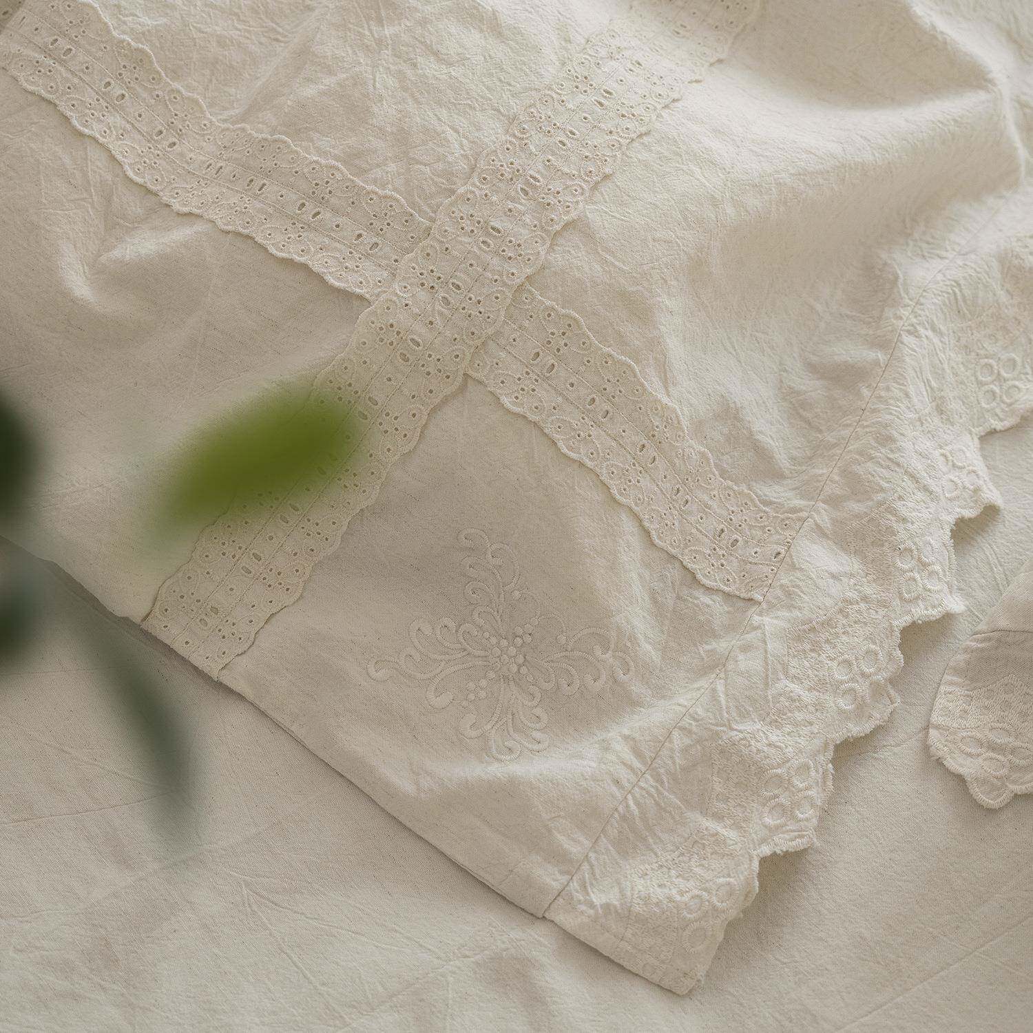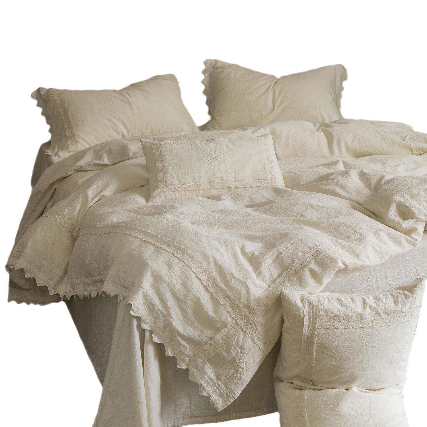 高端A类母婴花边棉麻四件套轻法式复古刺绣民宿被套床单床上用品