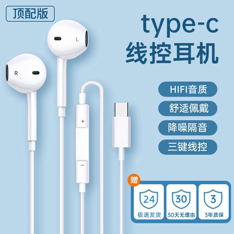 2025新款有线耳机半入耳式高音质type-c接口游戏听歌降噪手机圆口