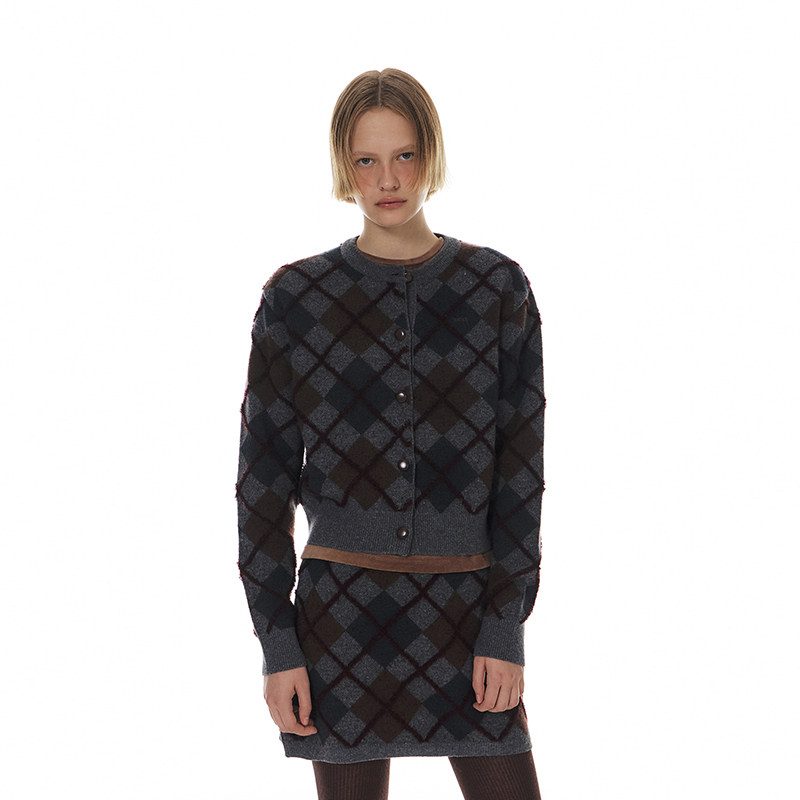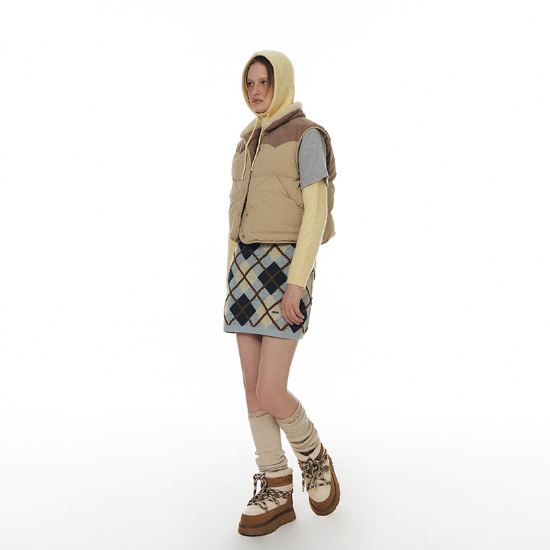 GROVE官方旗舰店冬季款菱格纹毛织短裙女韩版A字半身裙通勤