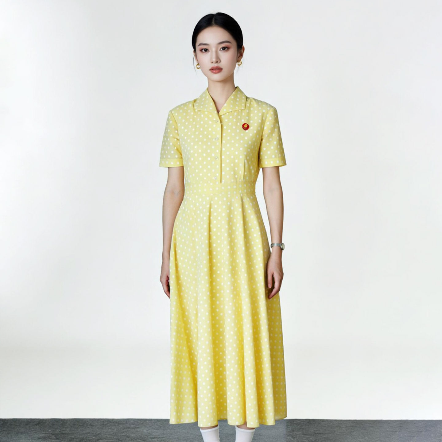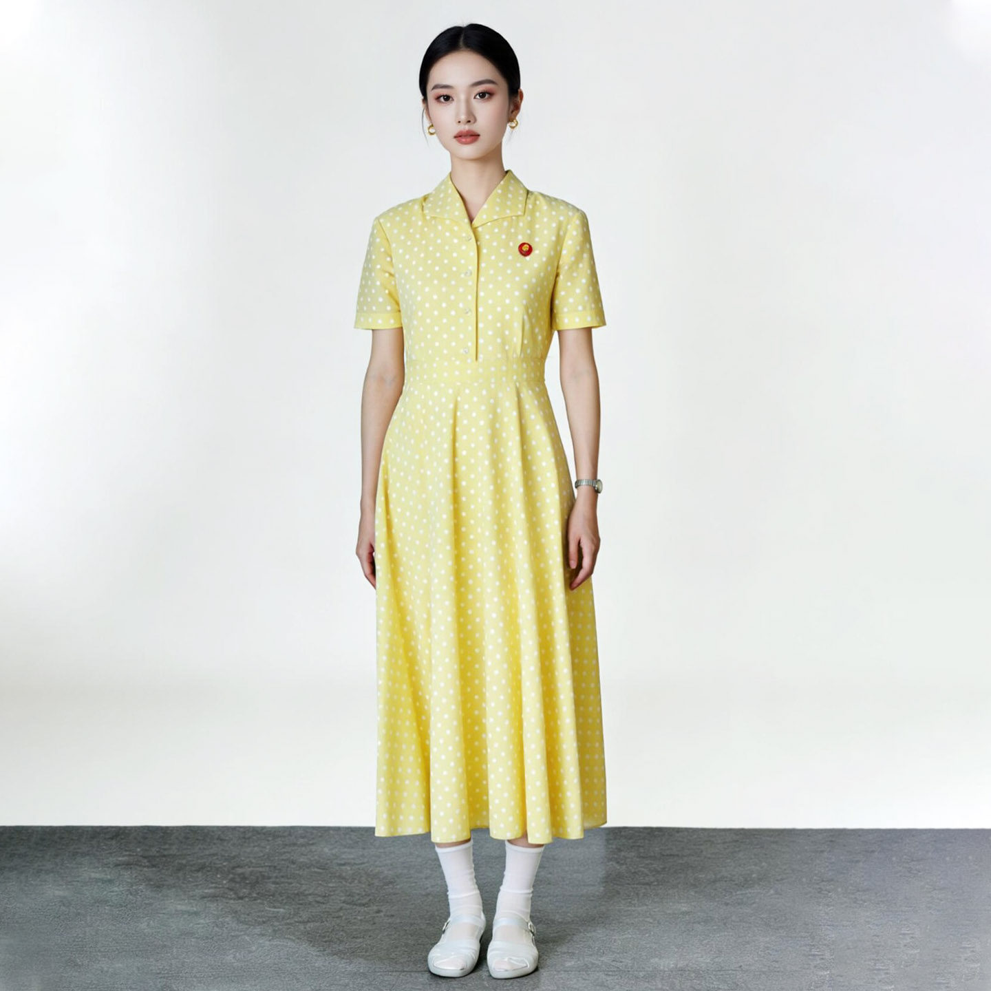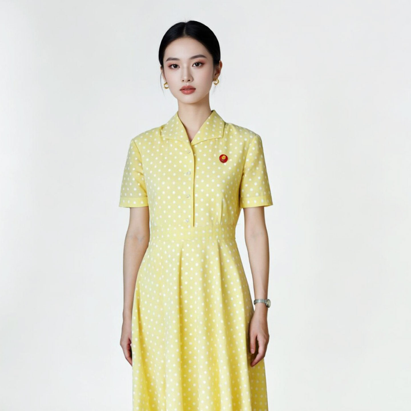 纯真年代的爱情郭晓婷方穆静同款波点衬衫连衣裙女翻领收腰长裙子
