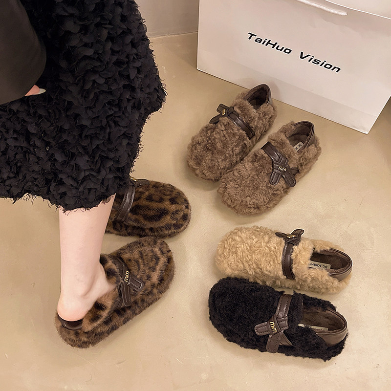 法式羊羔毛毛鞋女外穿2025冬季新款厚底百搭一脚蹬豆豆鞋加绒棉鞋