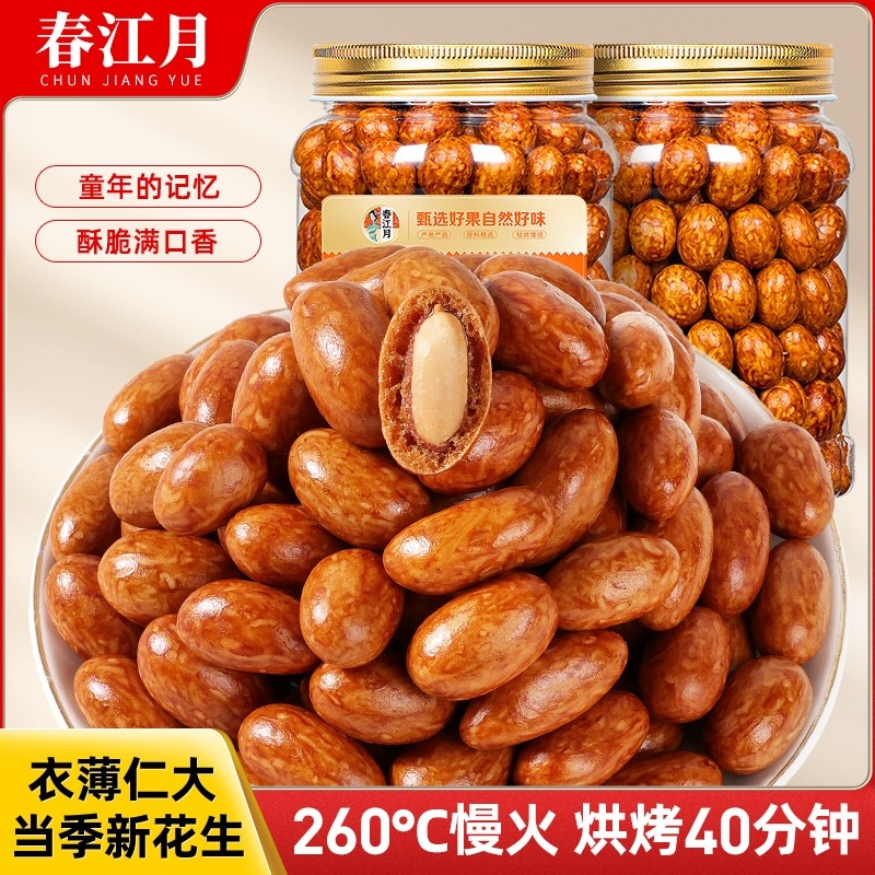 春江月正宗鱼皮花生豆多彩虎皮花生米500g炒货酱油老式旗舰店零食