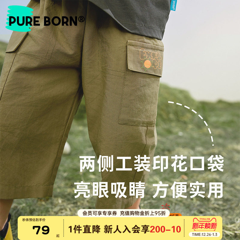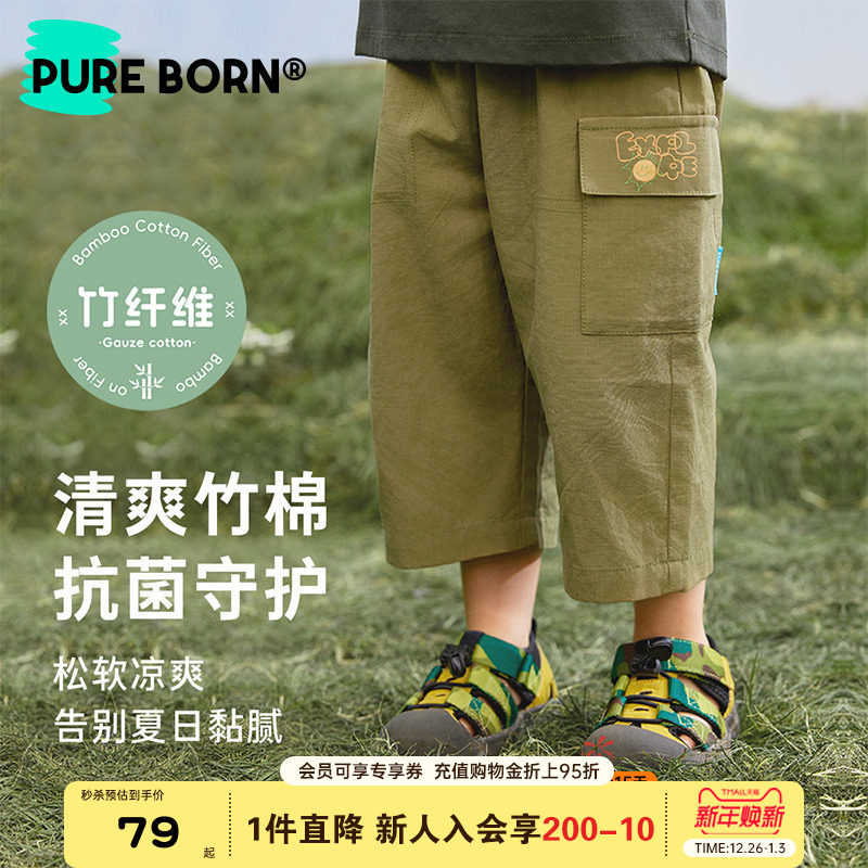 【呼吸裤】博睿恩儿童休闲裤子2025夏季新款工装裤竹棉抗菌九分裤