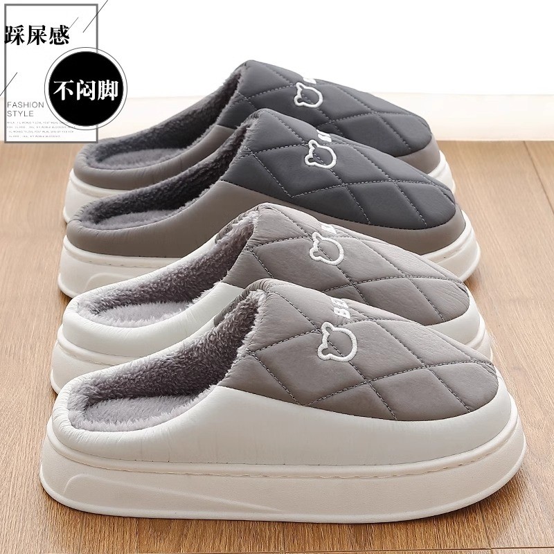羽绒棉拖鞋男冬季2024新款室内家居厚底防水防滑加绒保暖家用棉拖