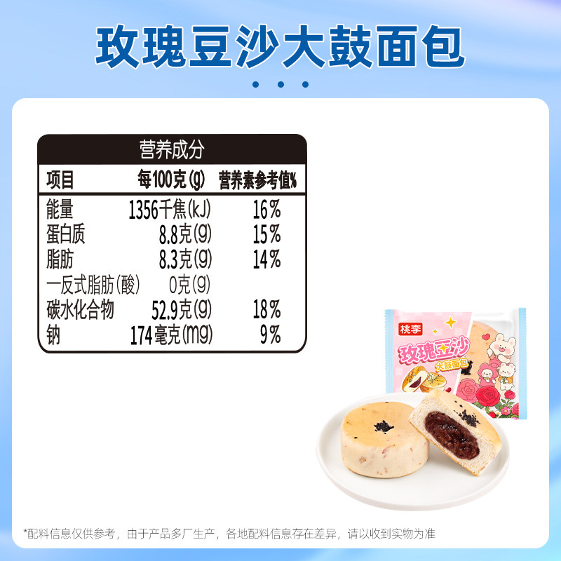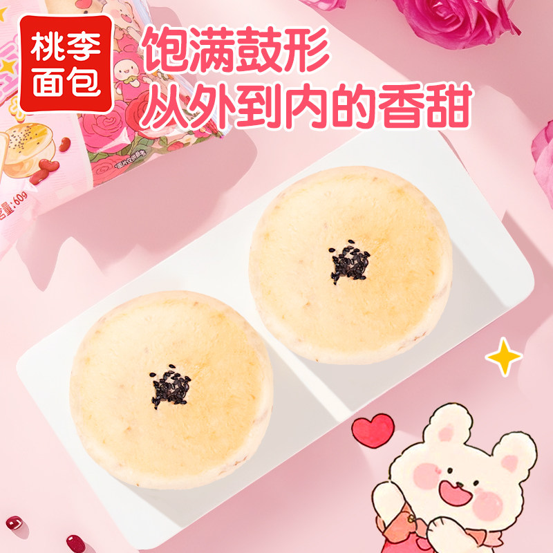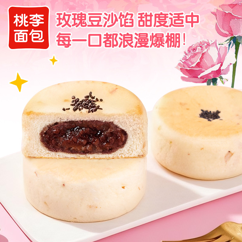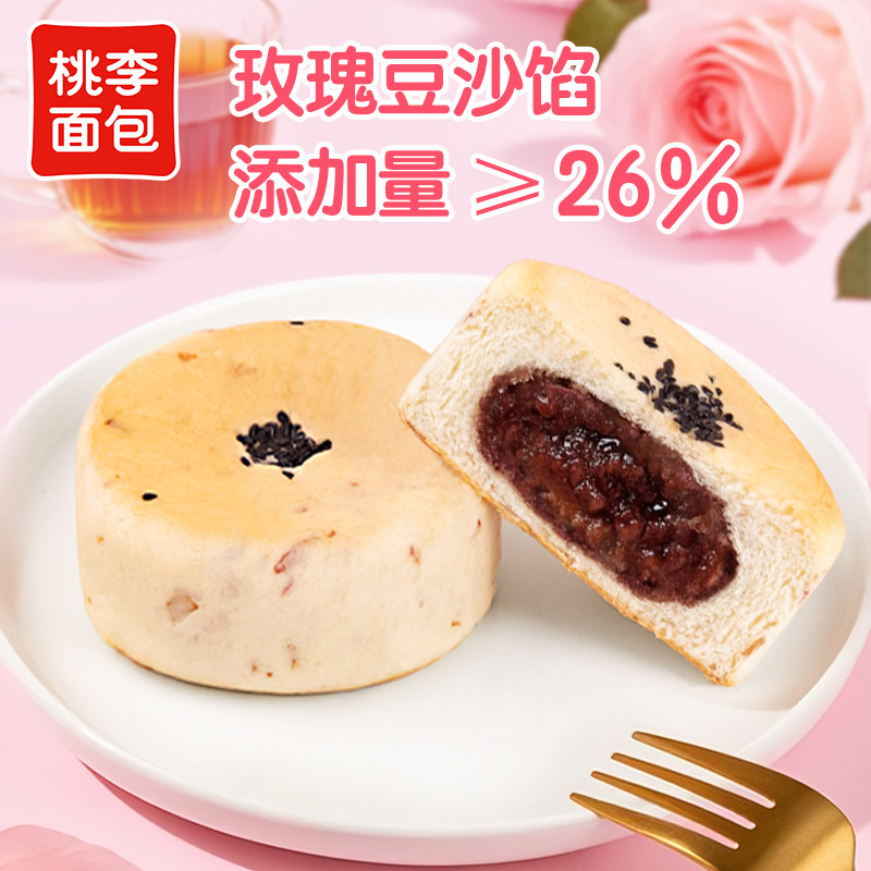桃李玫瑰豆沙大鼓面包整箱早餐食品饱腹休闲小零食豆沙夹心面包
