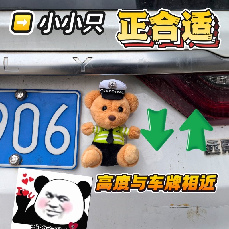 快拆卡扣小小只交警小熊车尾挂件无痕机车车尾箱装饰玩偶个性公仔