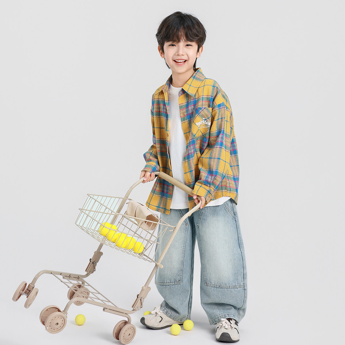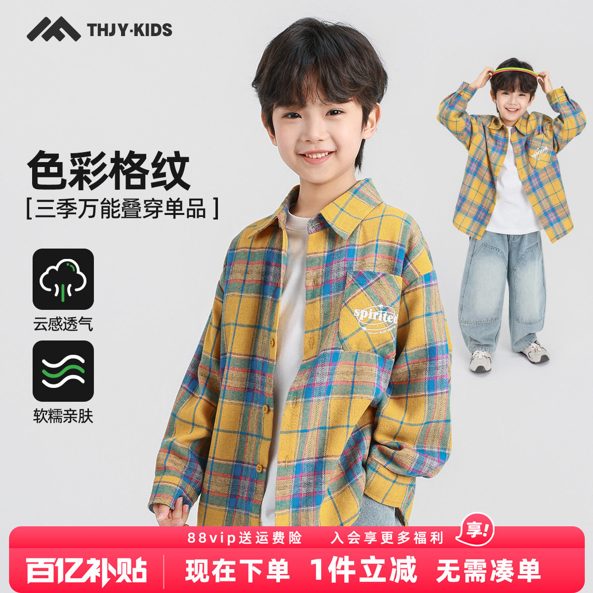 贝肽斯[防褪色]儿童牛仔衬衫外套男童长袖衬衣宝宝2026春装新款