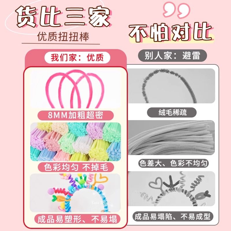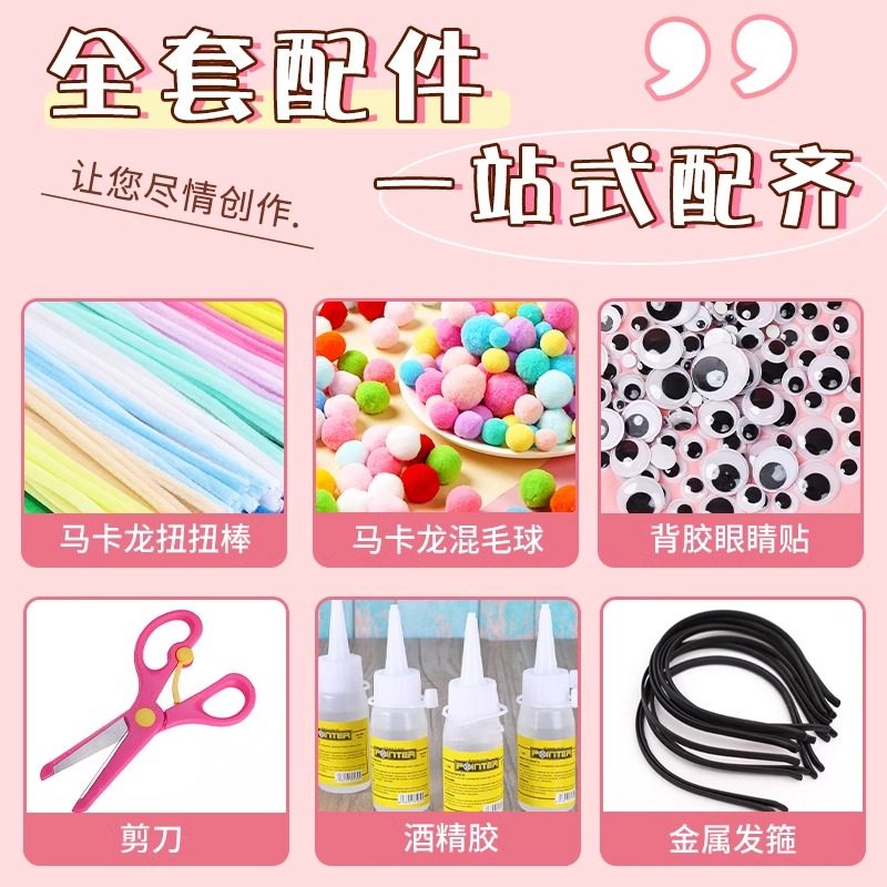 小红书同款扭扭棒发箍亲子新年DIY手工材料包全套批发儿童幼儿园手工制作饰品配件加密妞妞棒成人发箍自制