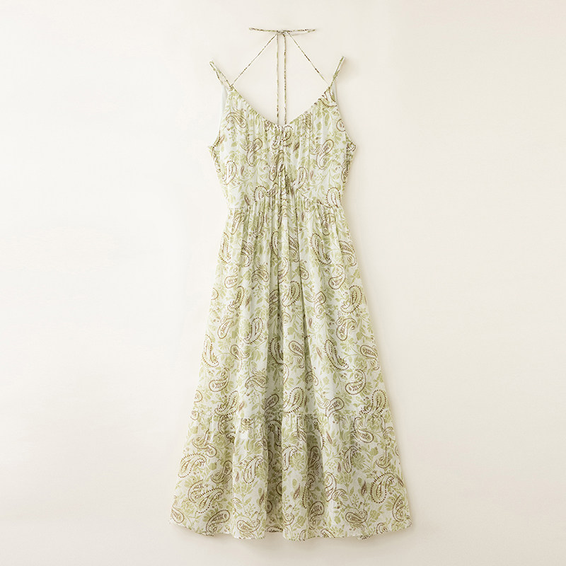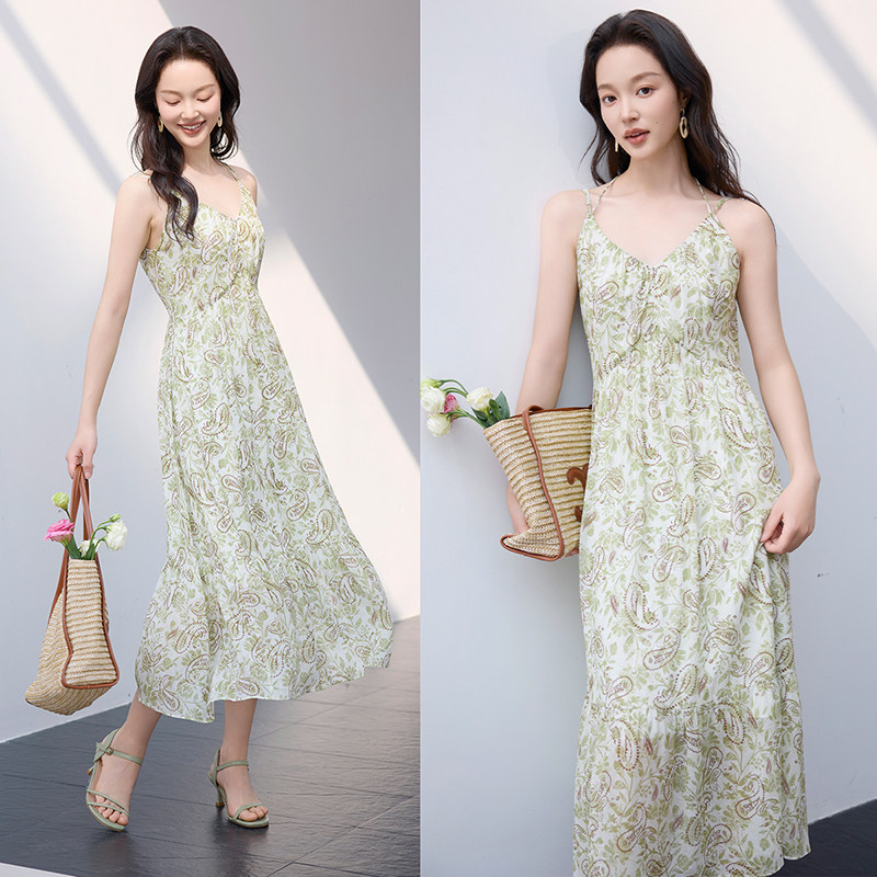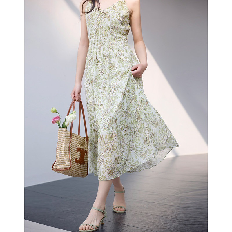 思诺芙德法式桑蚕丝吊带连衣裙女25夏新款气质真丝度假风长裙