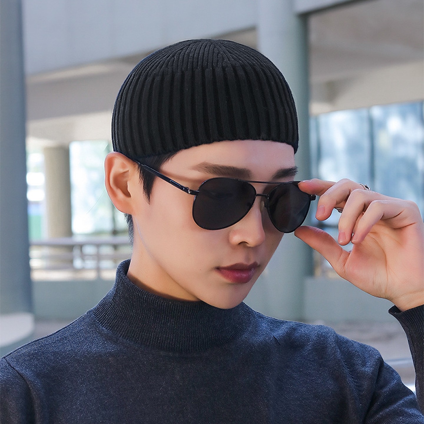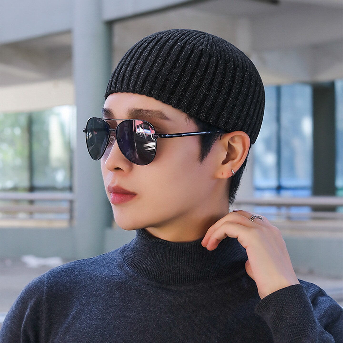 帽子男潮大头围瓜皮帽针织毛线帽嘻哈圆顶西瓜地痞帽秋冬包头冷帽