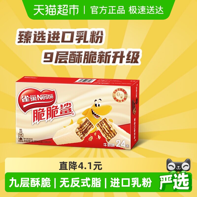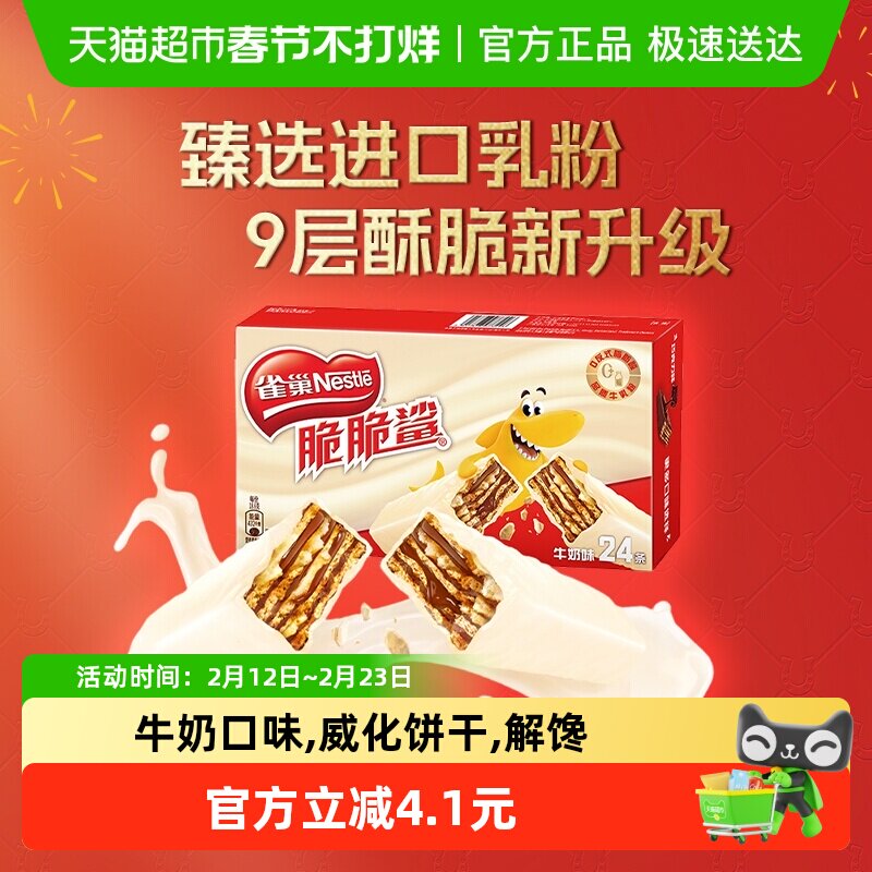 【旗舰店】雀巢脆脆鲨威化饼干巧克力牛奶味24条单独包装休闲零食