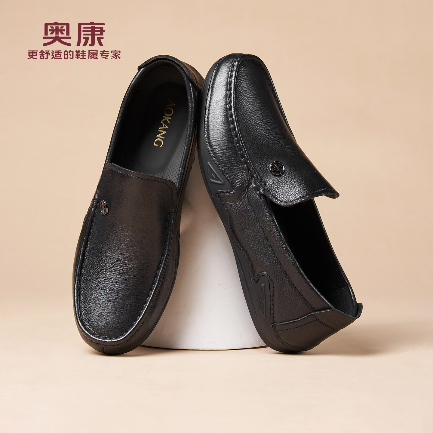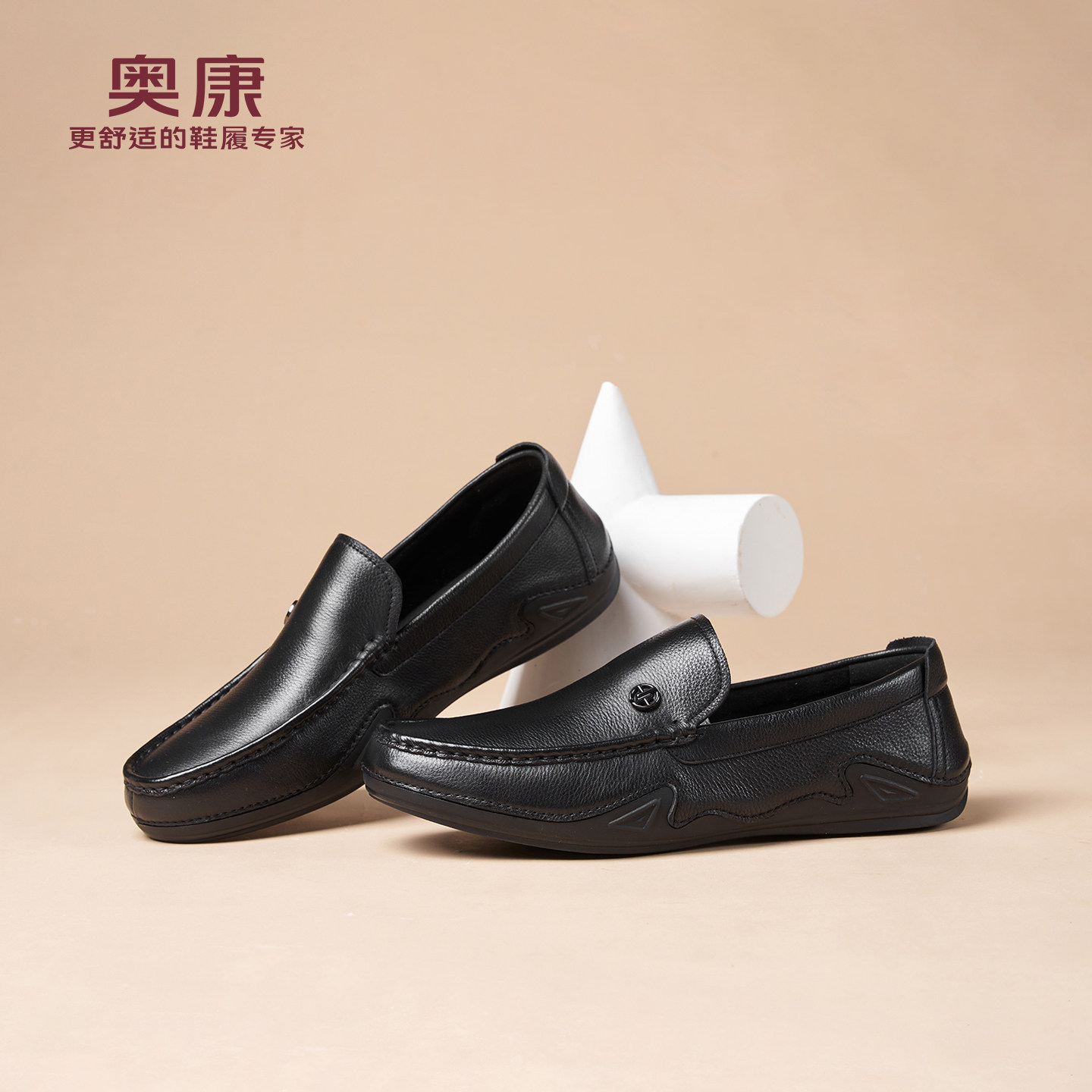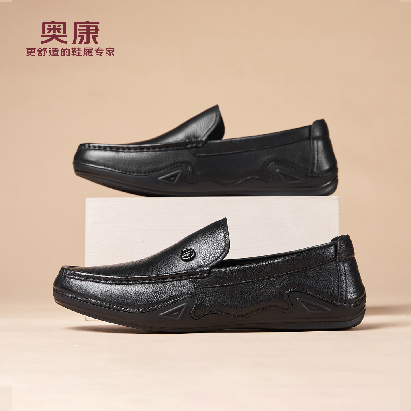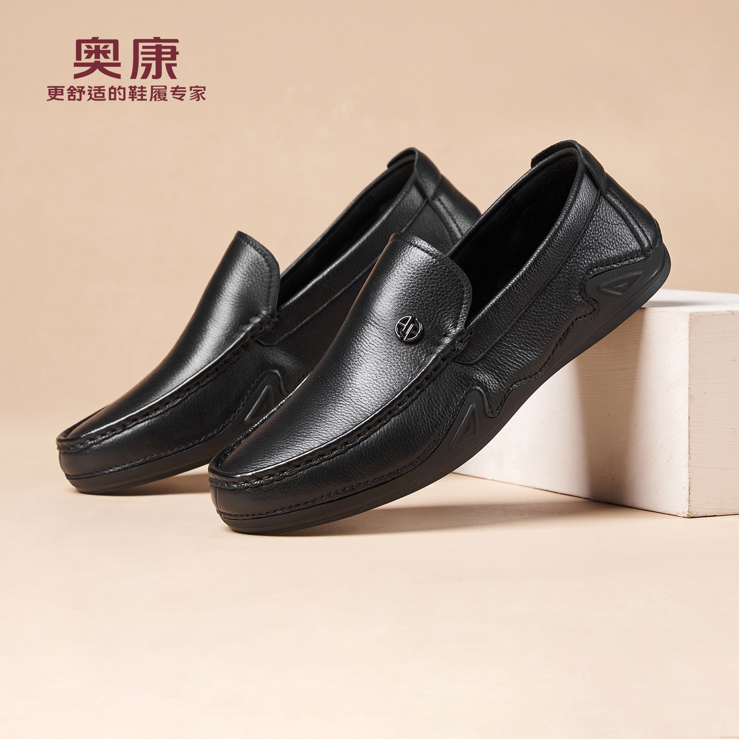 奥康春秋季商务休闲皮鞋男真皮软底乐福鞋舒适一脚蹬套脚爸爸鞋