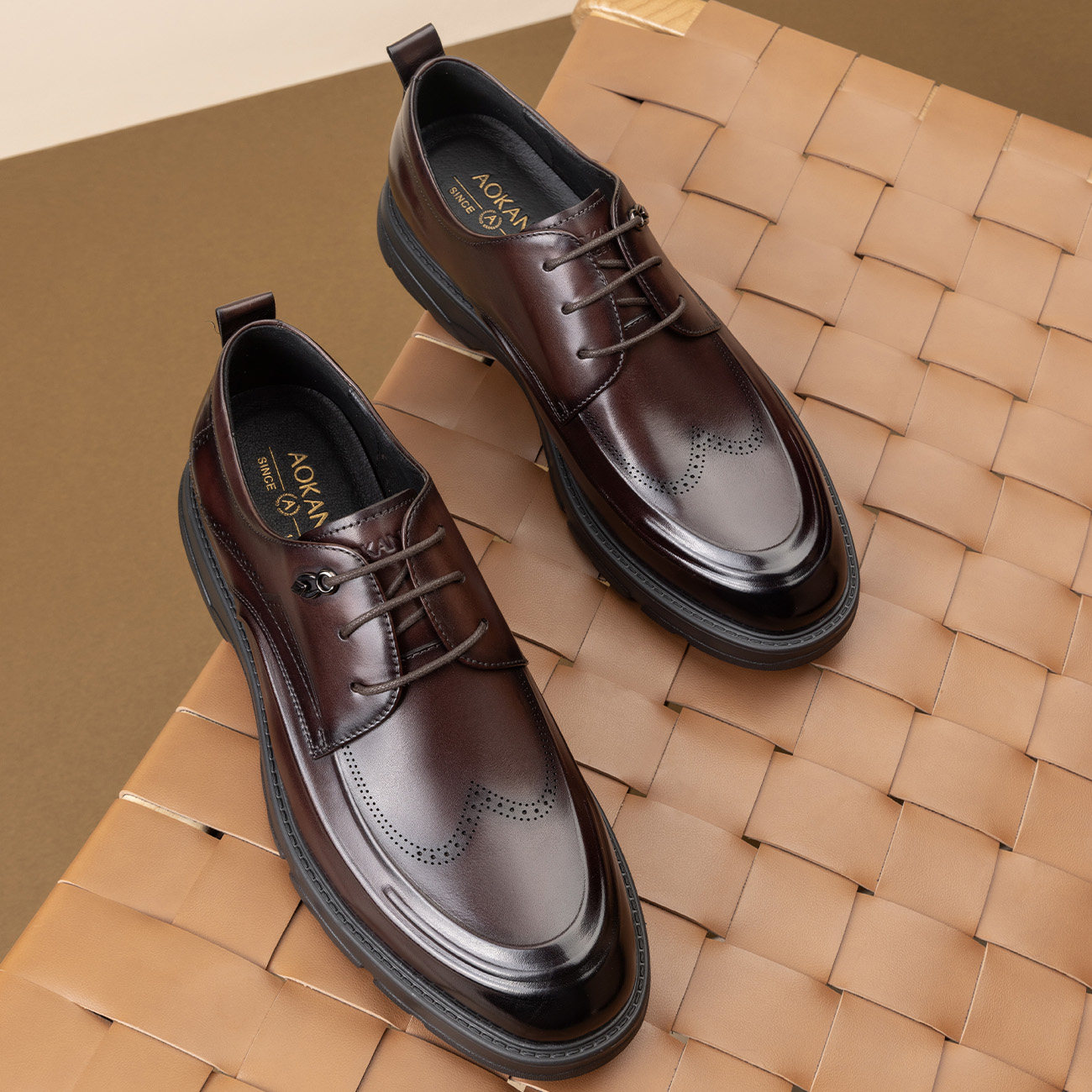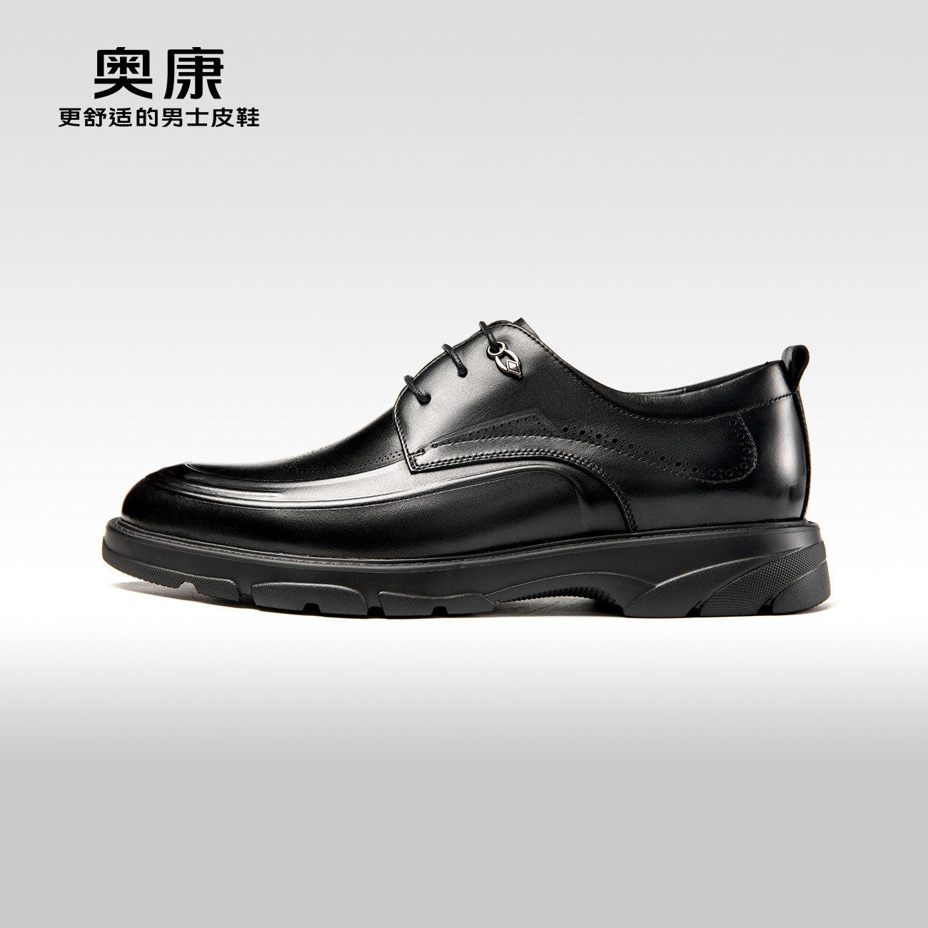 奥康男鞋春秋季新款低帮正装皮鞋男商务圆头系带厚底耐磨鞋