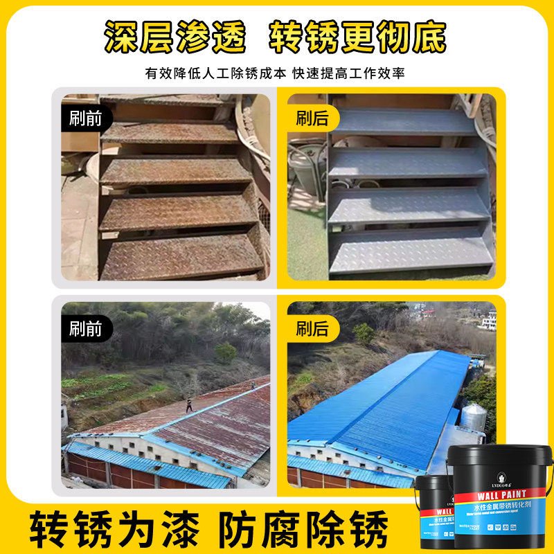 铁锈转化剂彩钢瓦翻新专用漆免打磨防锈漆金属除锈油漆固锈剂防腐