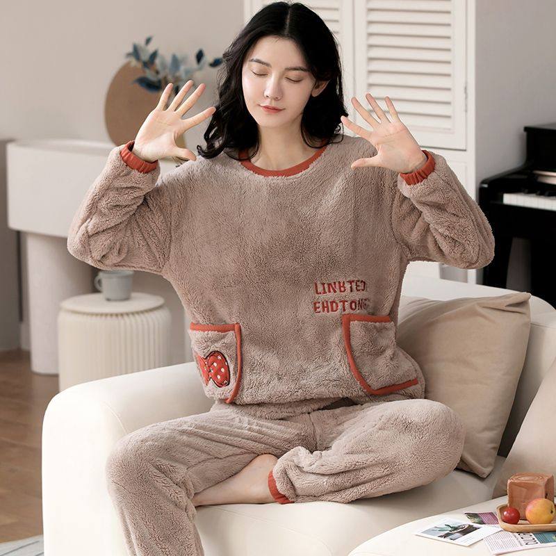 2025年冬款珊瑚绒睡衣女秋冬季加厚法兰绒加绒套装家居服春秋新款
