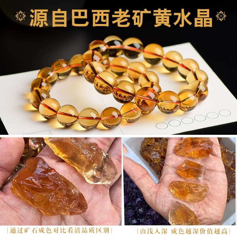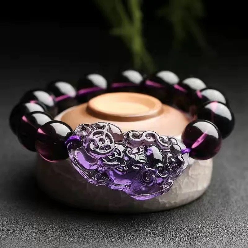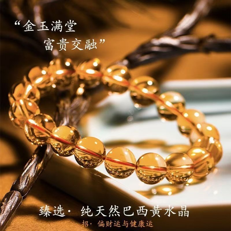 爆款仿巴西黄水晶紫水晶手链招财貔貅男女情侣款圆珠本命年礼物