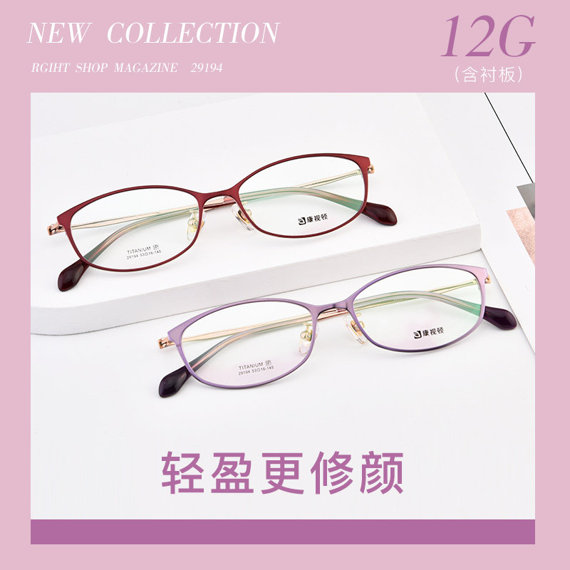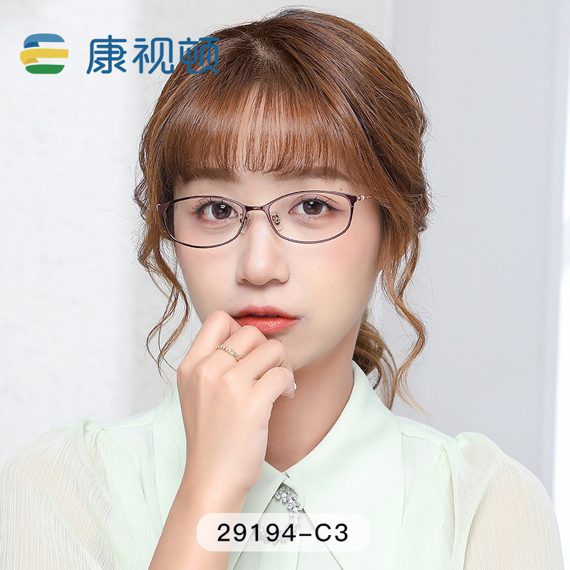 康视顿超轻钛材近视眼镜架镜框女轻奢文艺潮流椭圆全框眼镜29194