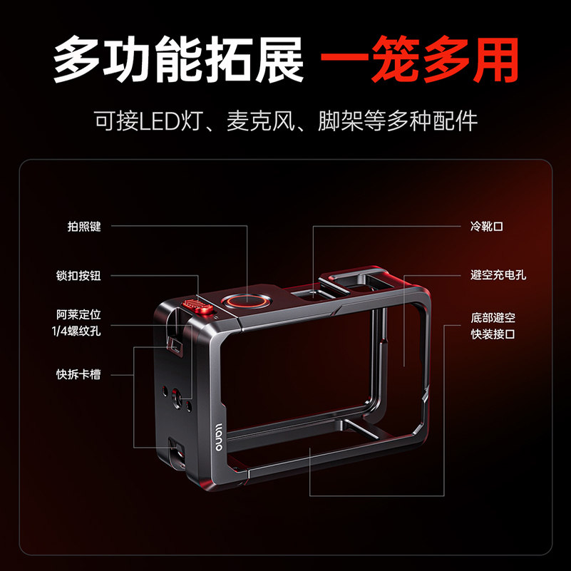绿巨能铝合金兔笼适用dji大疆action5pro兔笼拓展框action6/4/3相机街拍金属兔笼手柄超轻运动相机配件保护壳